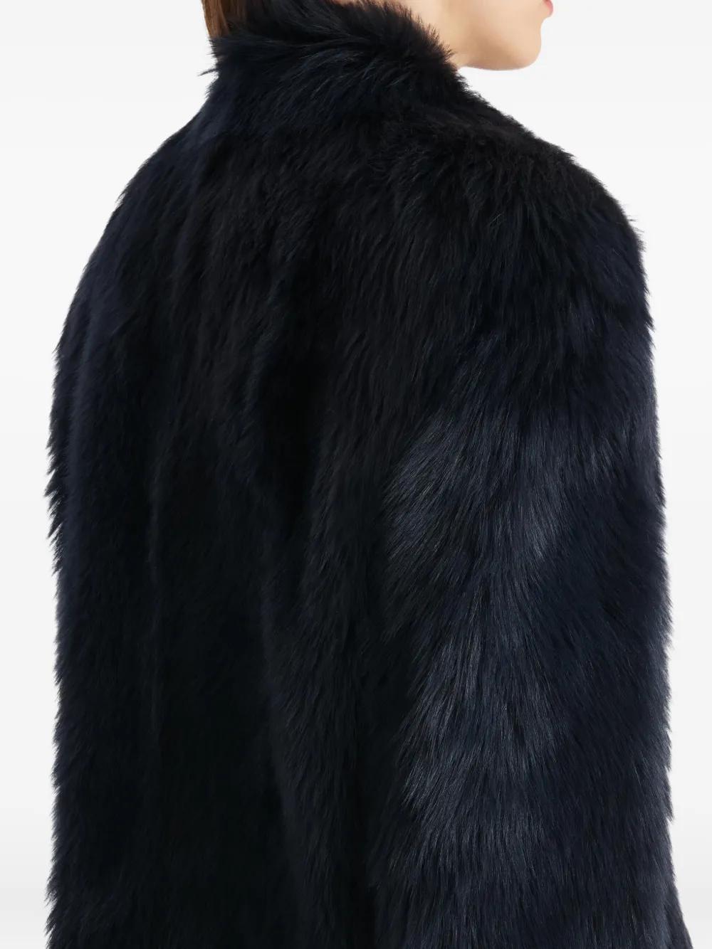 dark blue lamb fur collared long sleeves straight hem concealed fastening