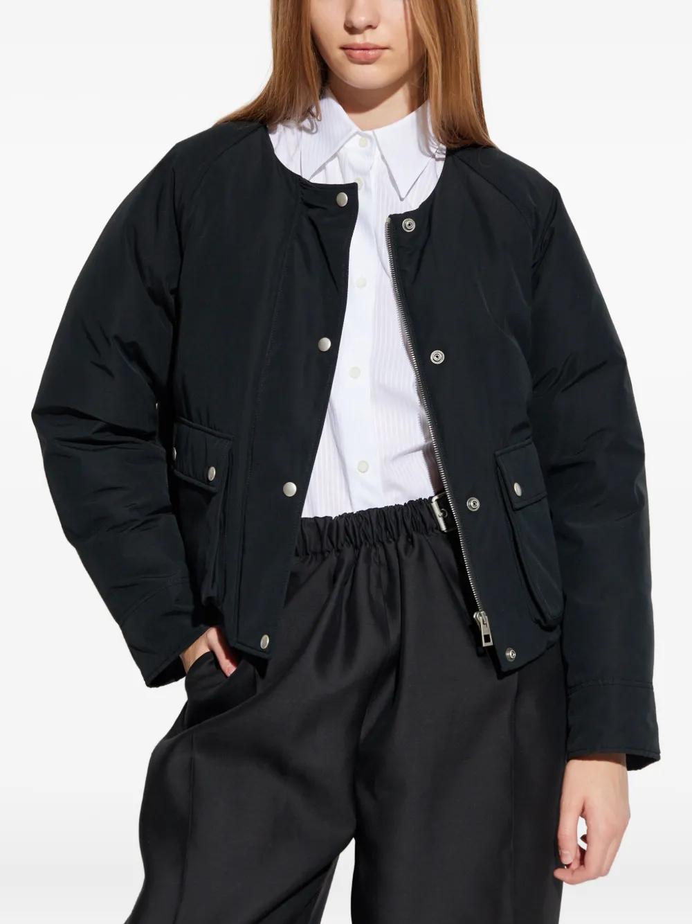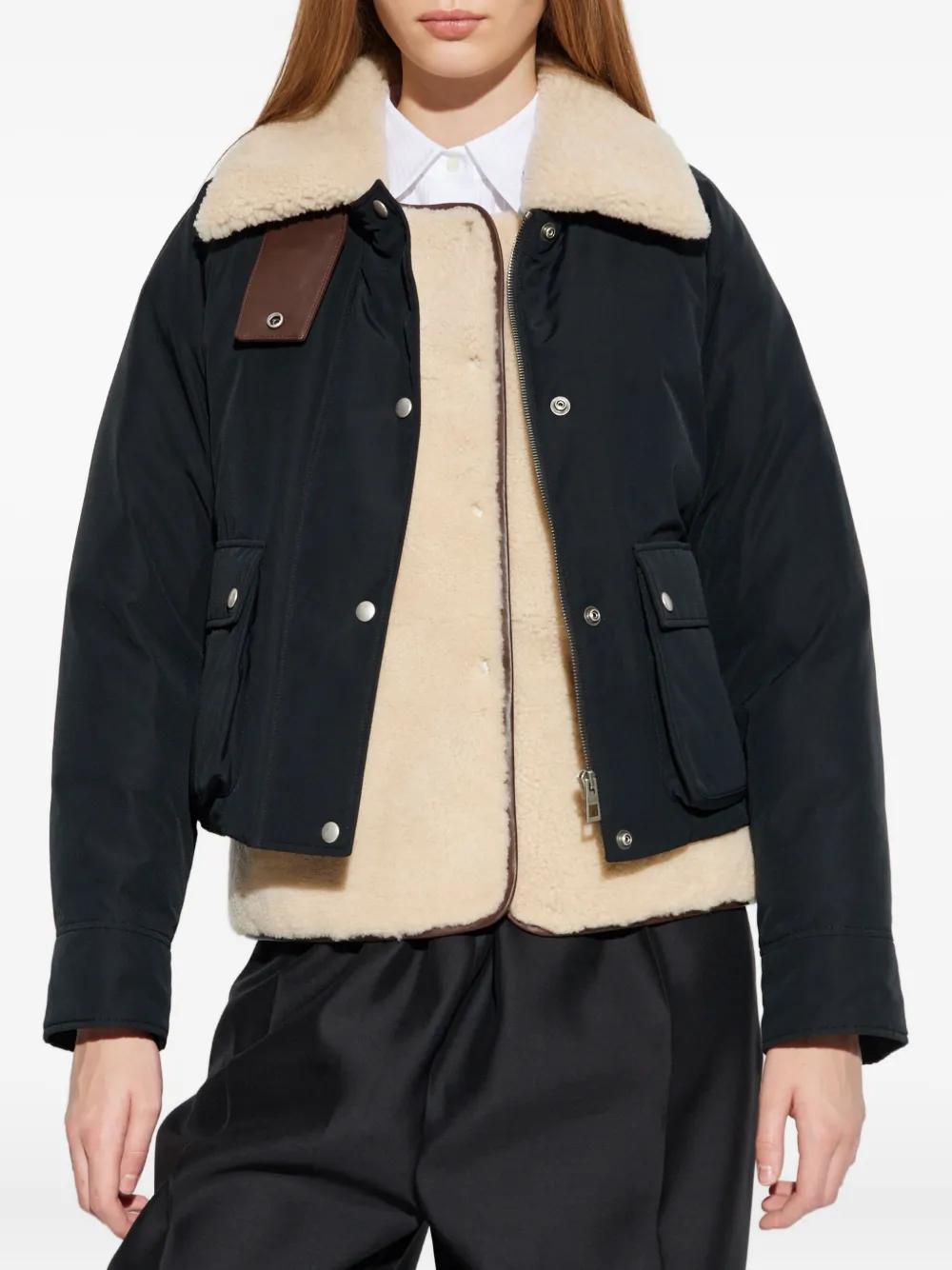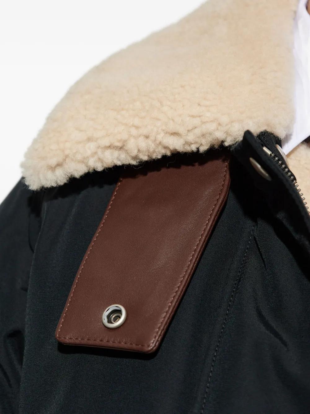 black faux-shearling collar front pockets button fastening leather tab cotton