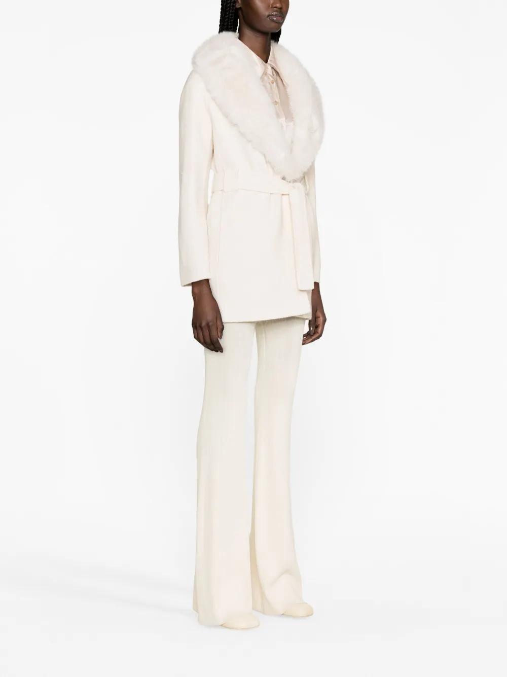 white faux-fur collar detachable belt long sleeves two side slit pockets