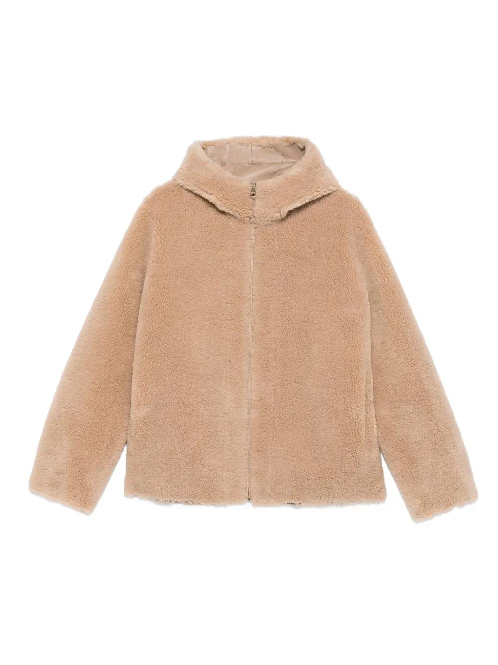 camel brown zip fastening classic hood long sleeves