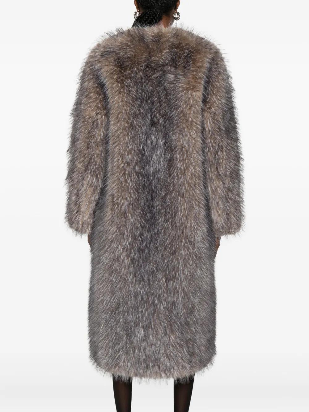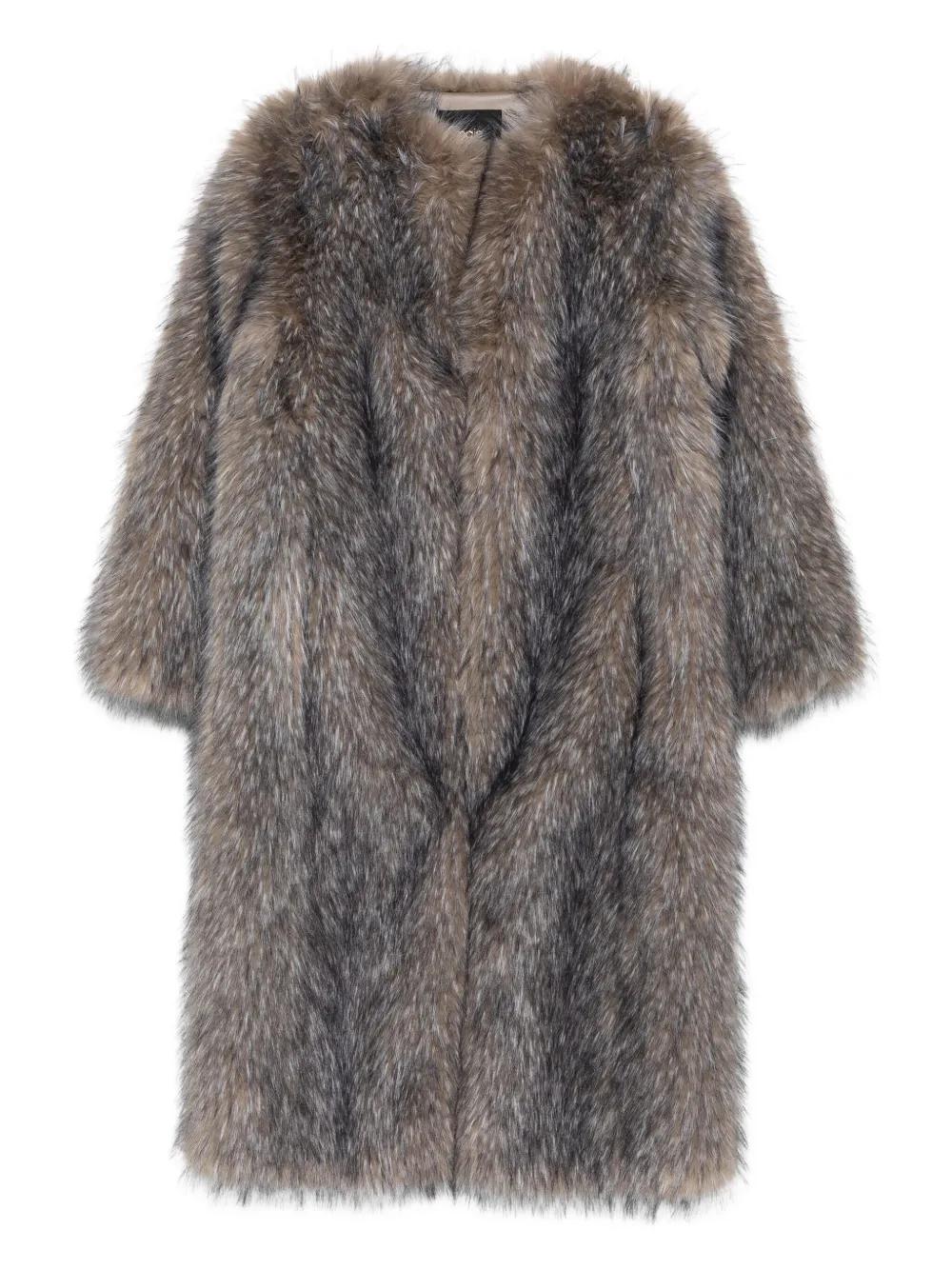 cedar brown faux-fur design front button fastening notched lapels two side slit pockets long sleeves straight hem