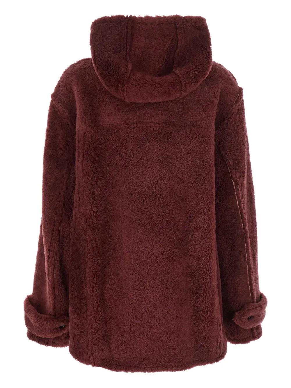 cedar brown faux-fur design front button fastening notched lapels two side slit pockets long sleeves straight hem