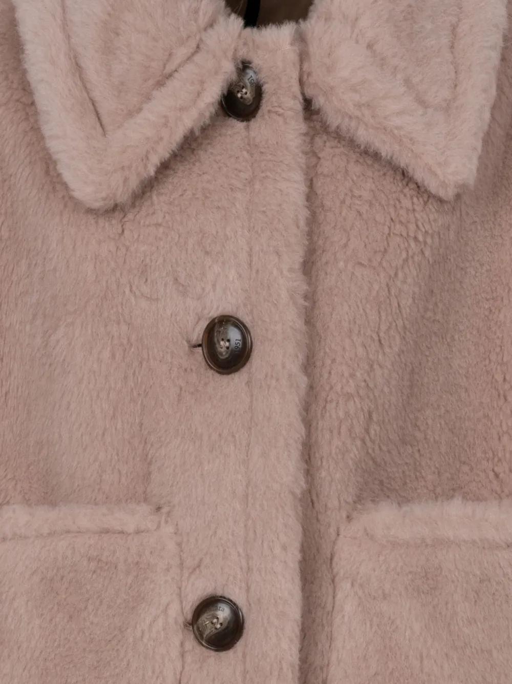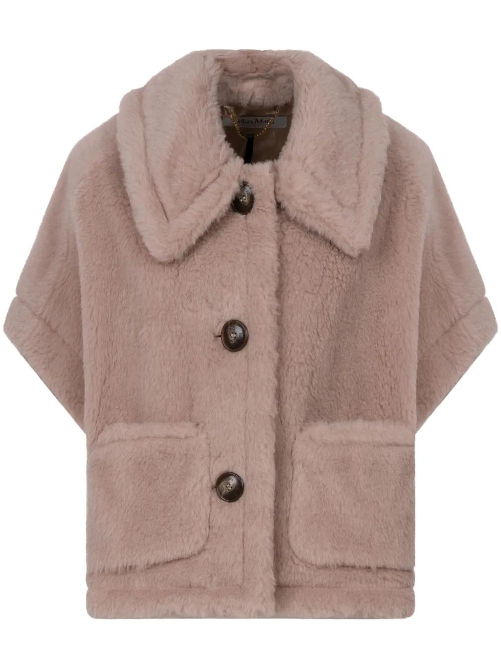 brown alpaca wool-blend front button fastening short sleeves front flap pockets straight hem