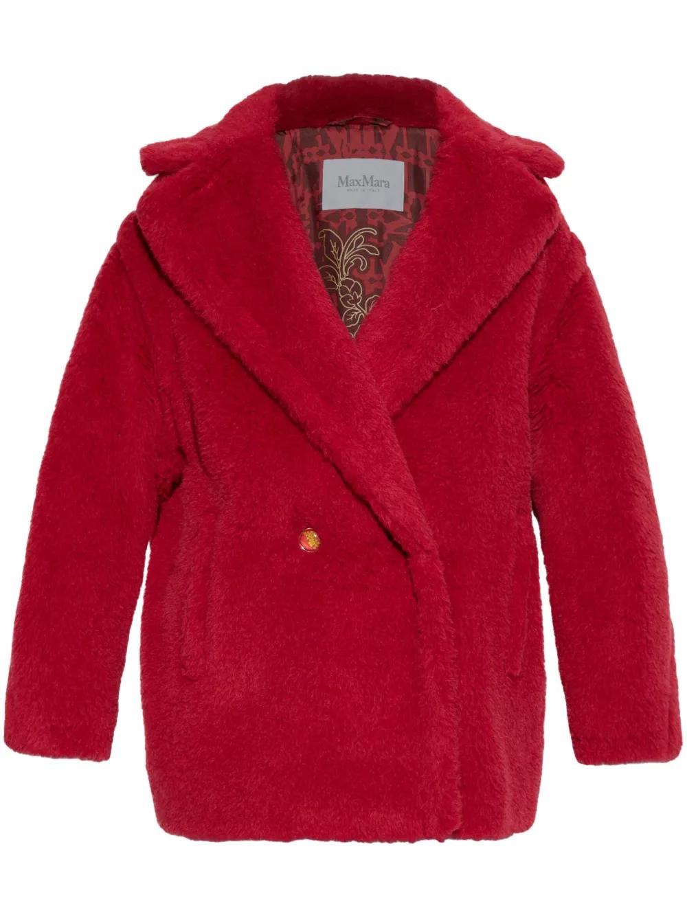blood red double-breasted button fastening long sleeves two side inset pockets