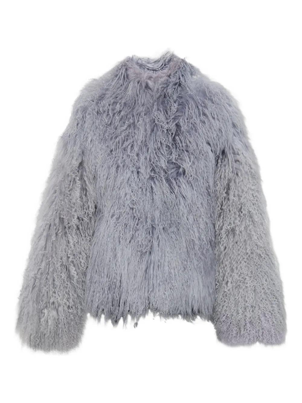 brown faux-fur texture round neck long sleeves straight hem concealed fastening
