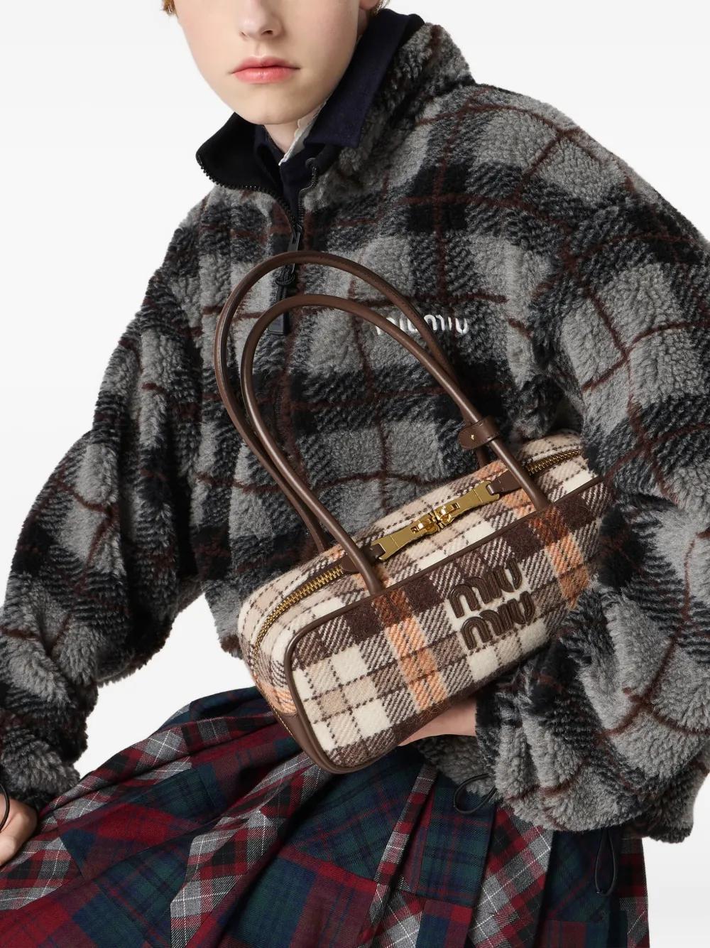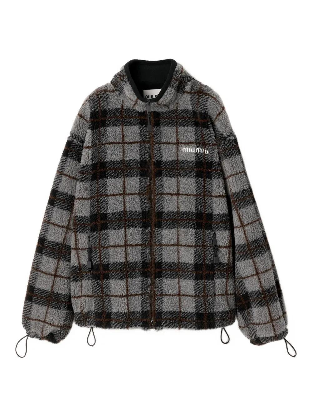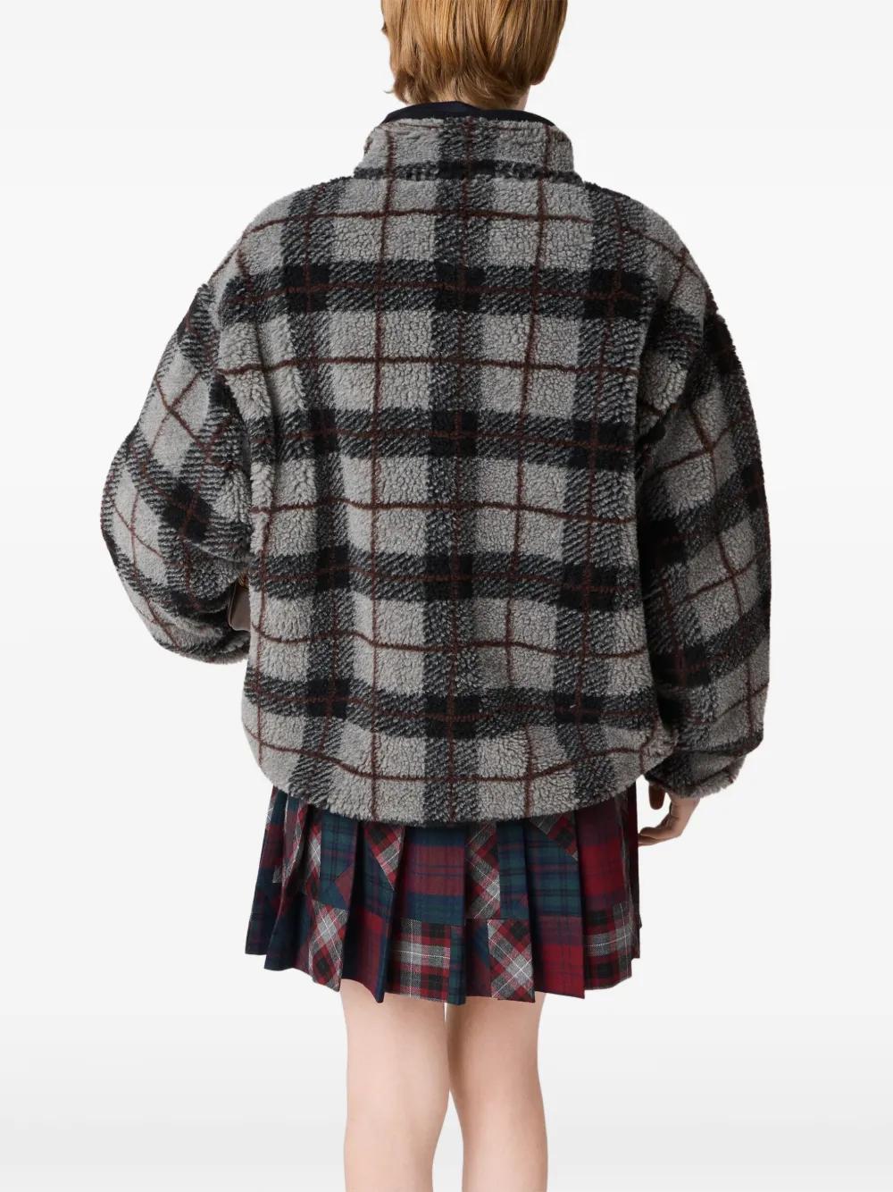 Miu Miu checked-pattern teddy-fleece jacket - Grey