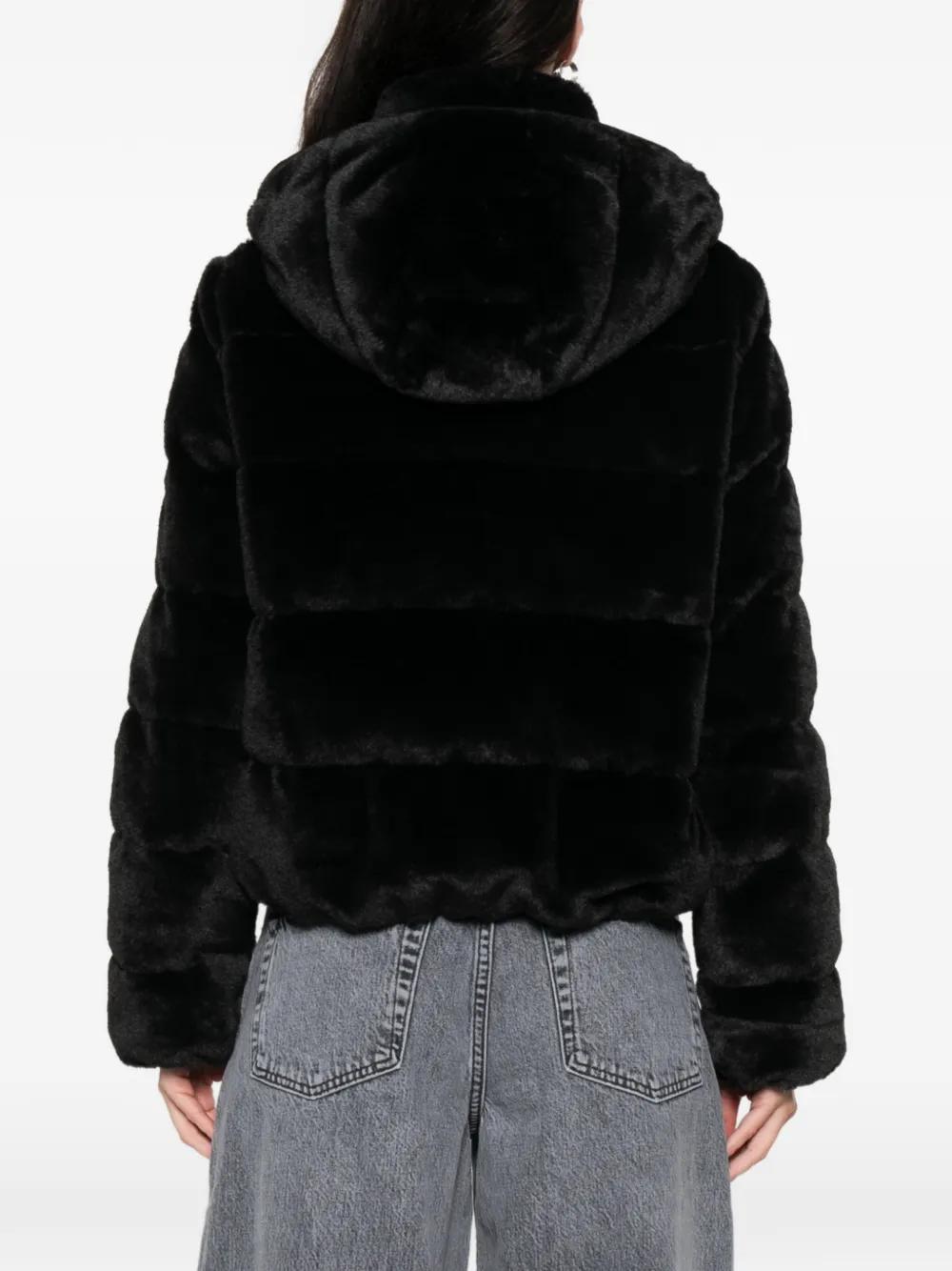 black embellished detailing drawstering hood zip fastening long sleeves quilted design