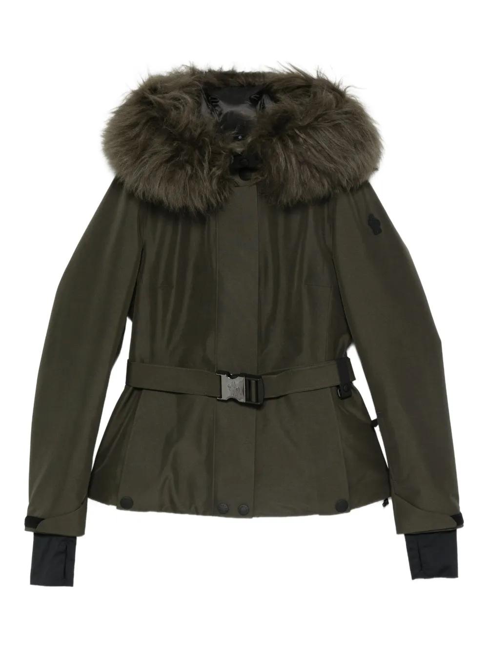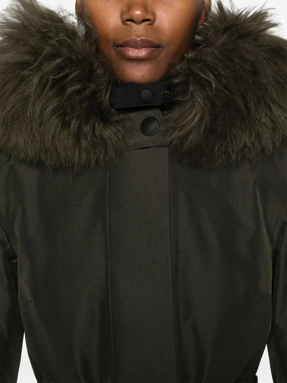 grey faux shearling detail hood frontal zip closure long sleeves side pockets