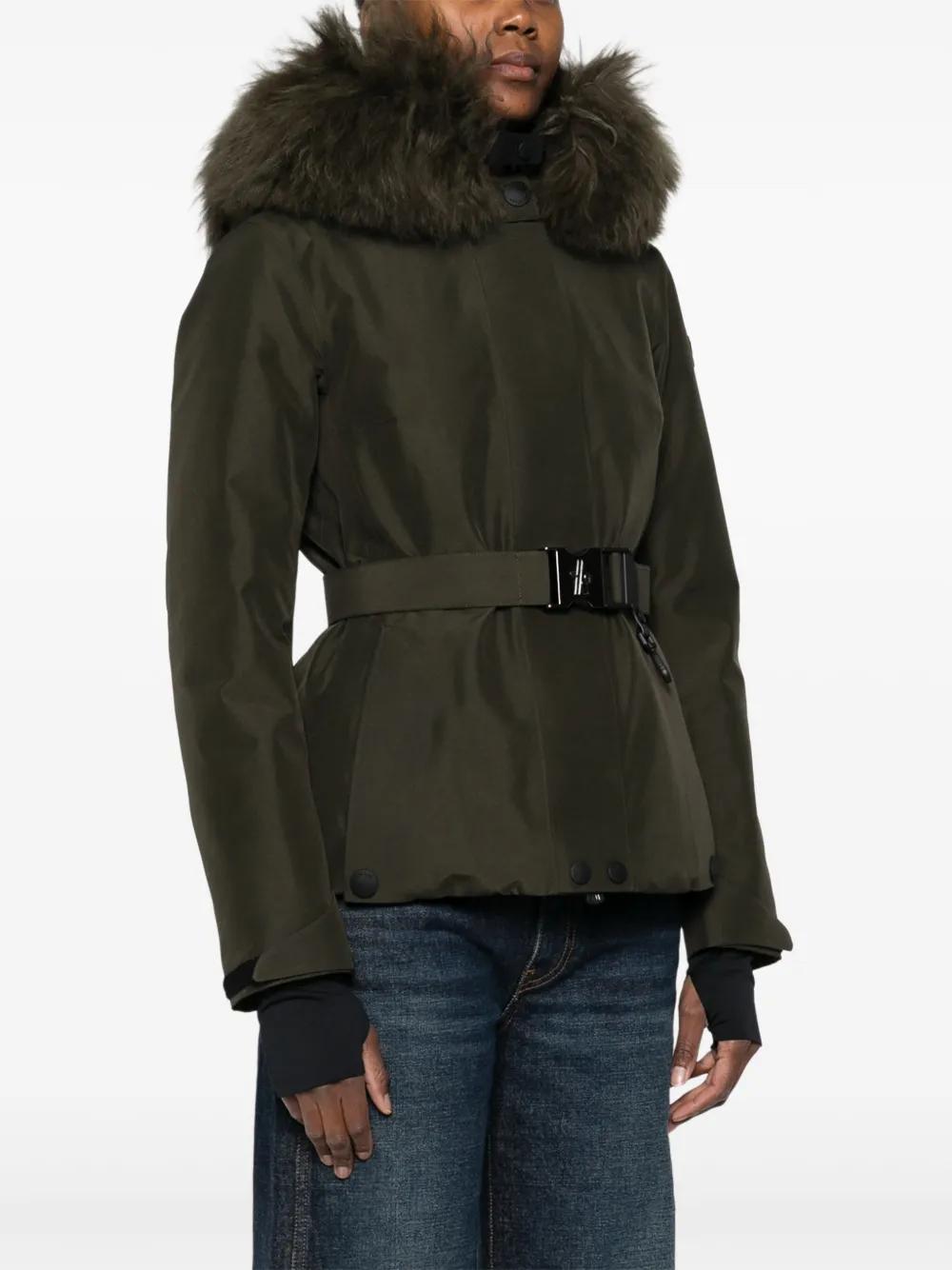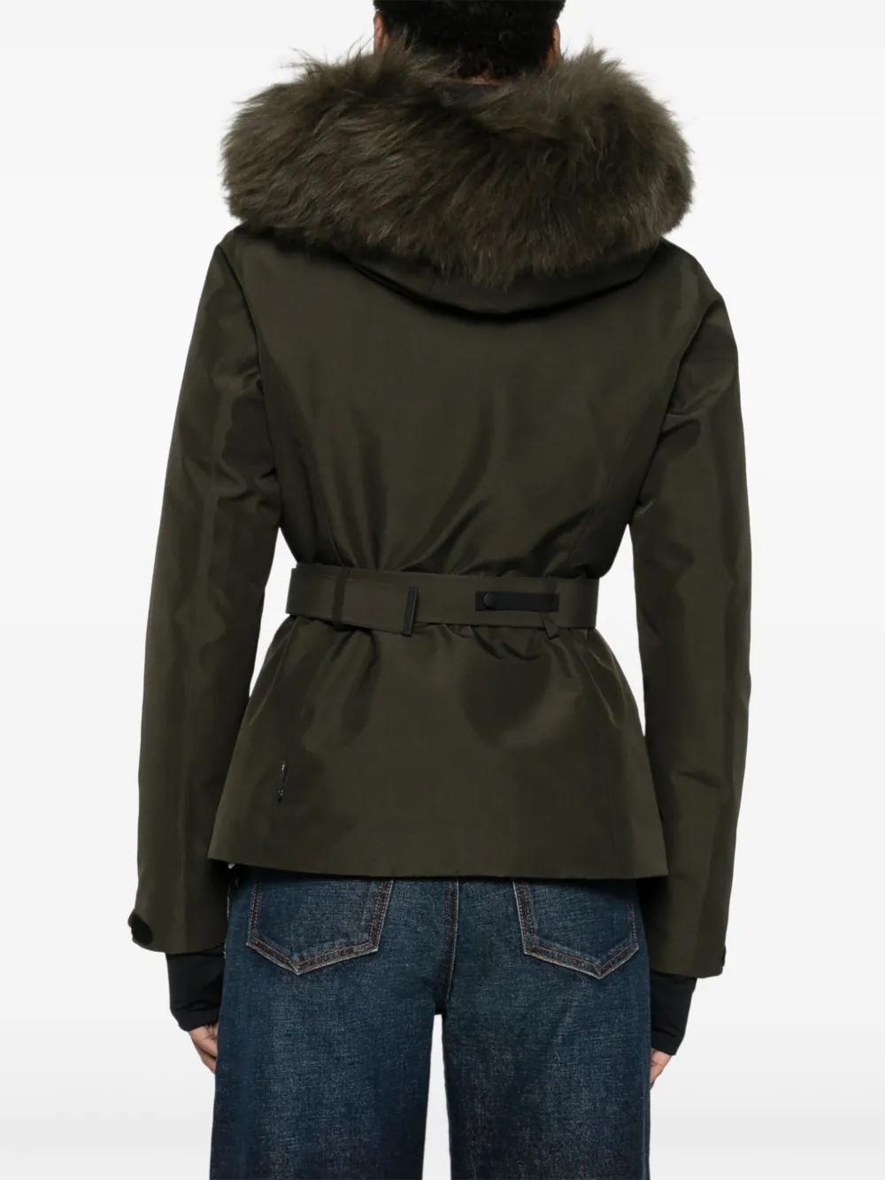 dark brown monogram print shearling trims zip closure side pockets leather details