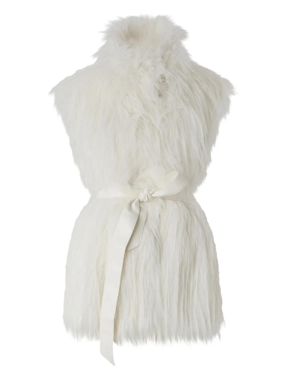 PINKO faux-fur belted vest - White