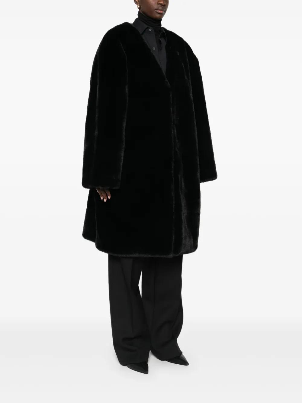 dark blue lamb fur collared long sleeves straight hem concealed fastening