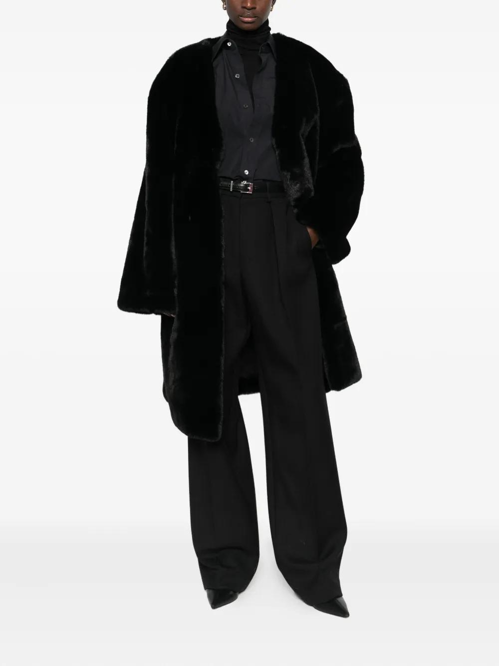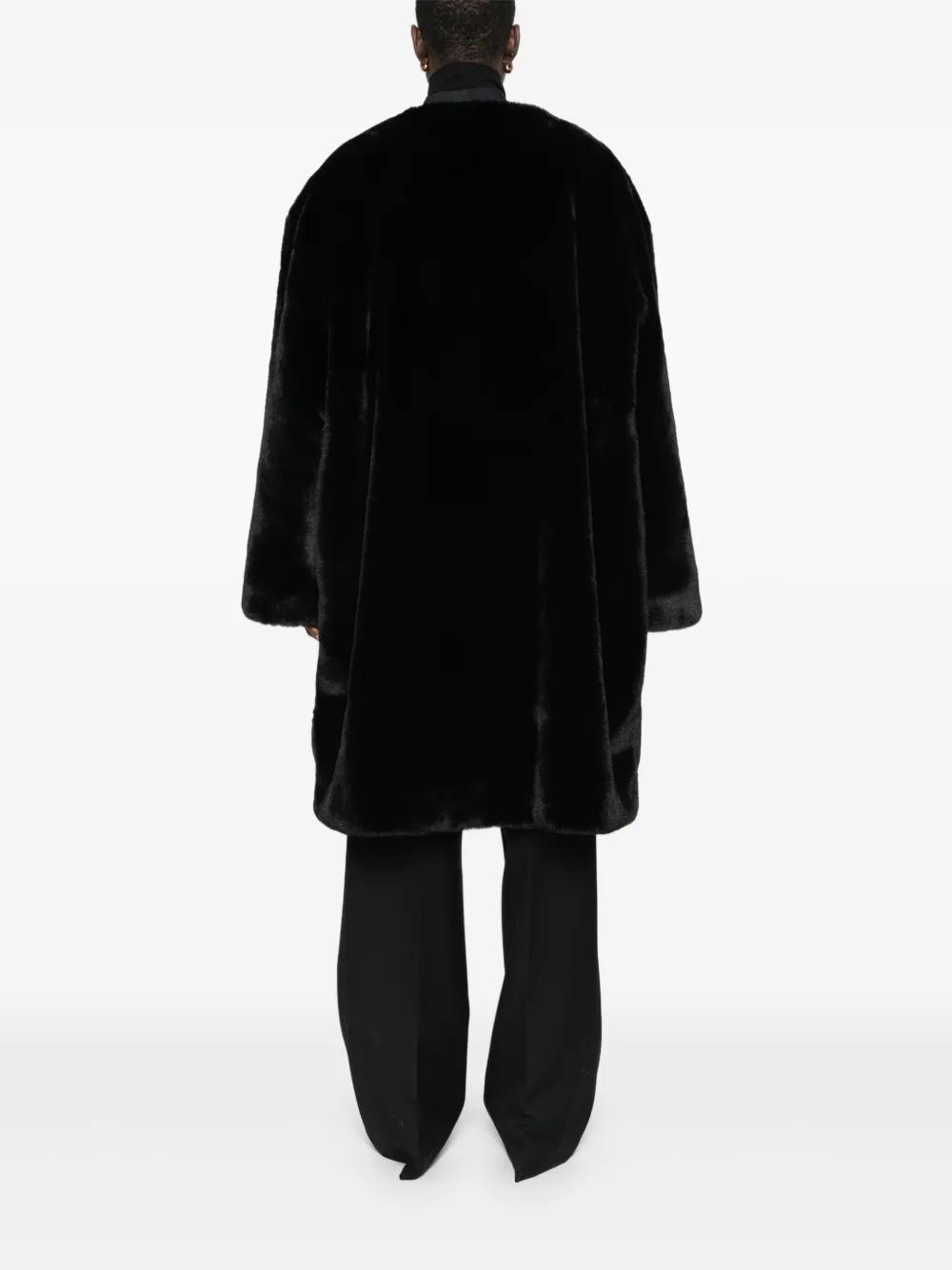 black shearling trim buckle embellishment zip fastening panelled design long sleeves