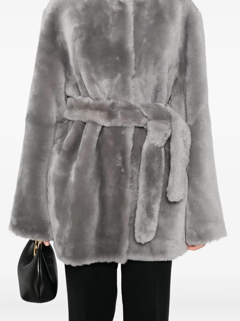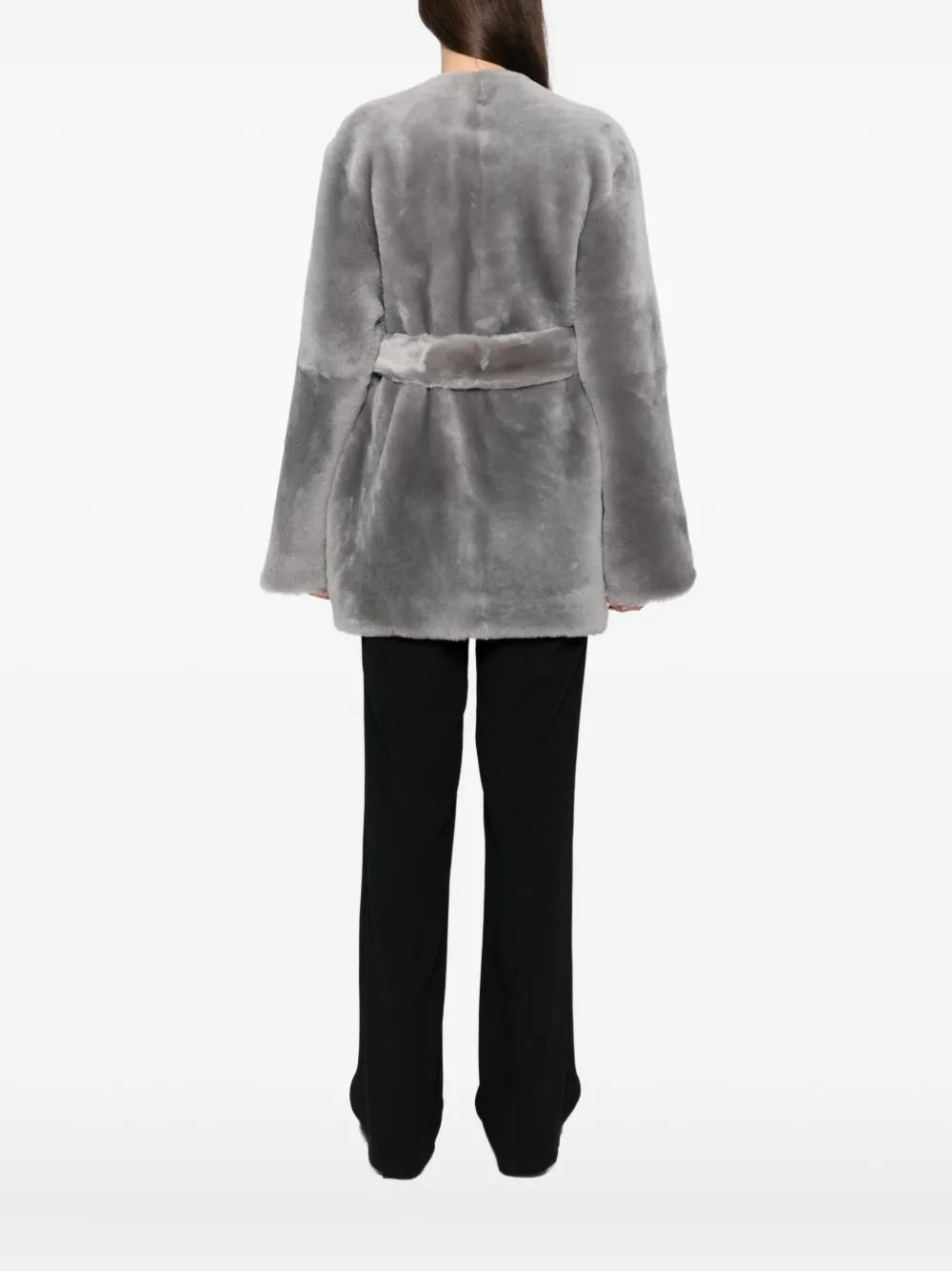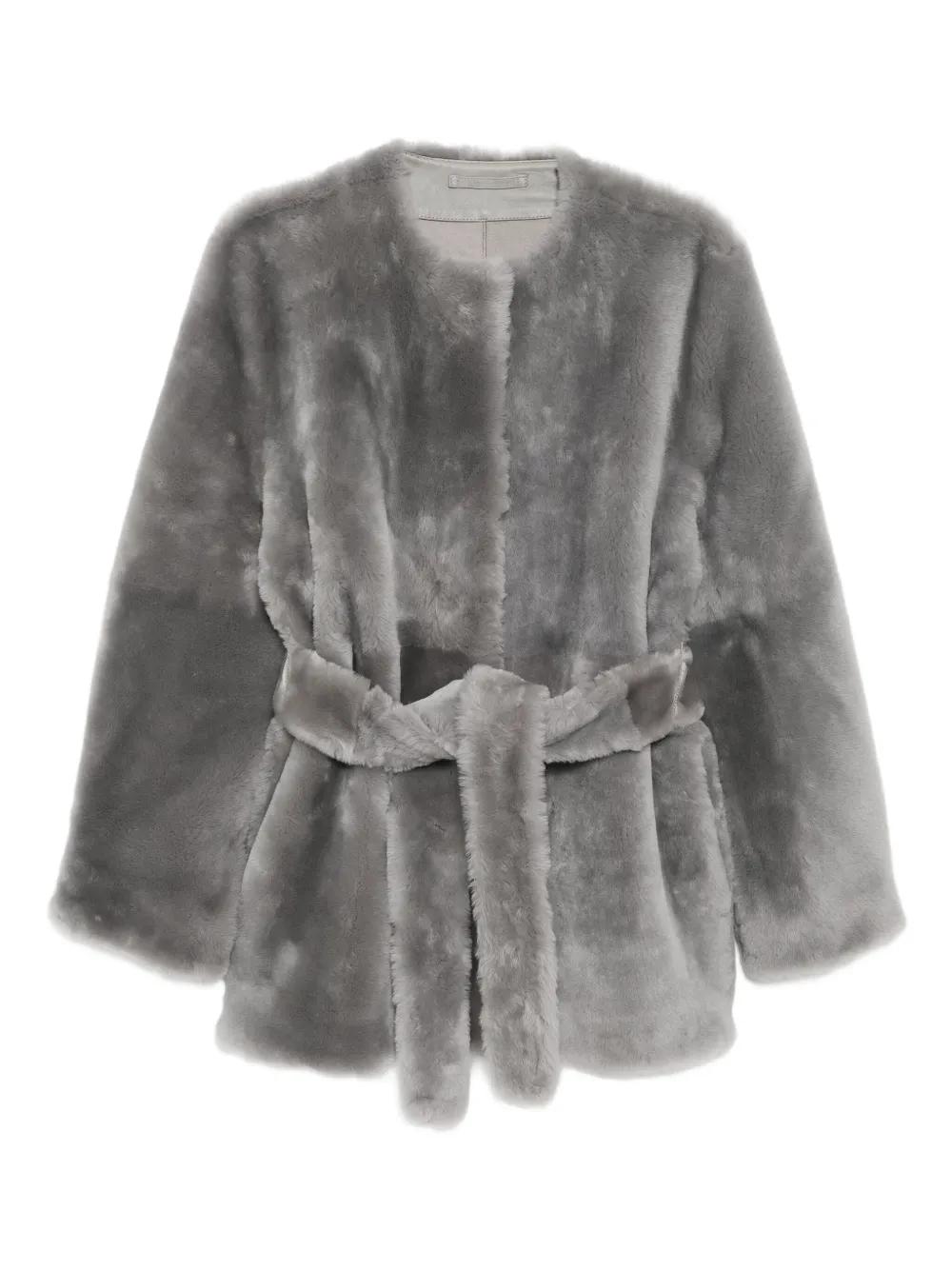 light grey front hook and eye fastening two side slit pockets detachable and adjustable waist belt belt loops