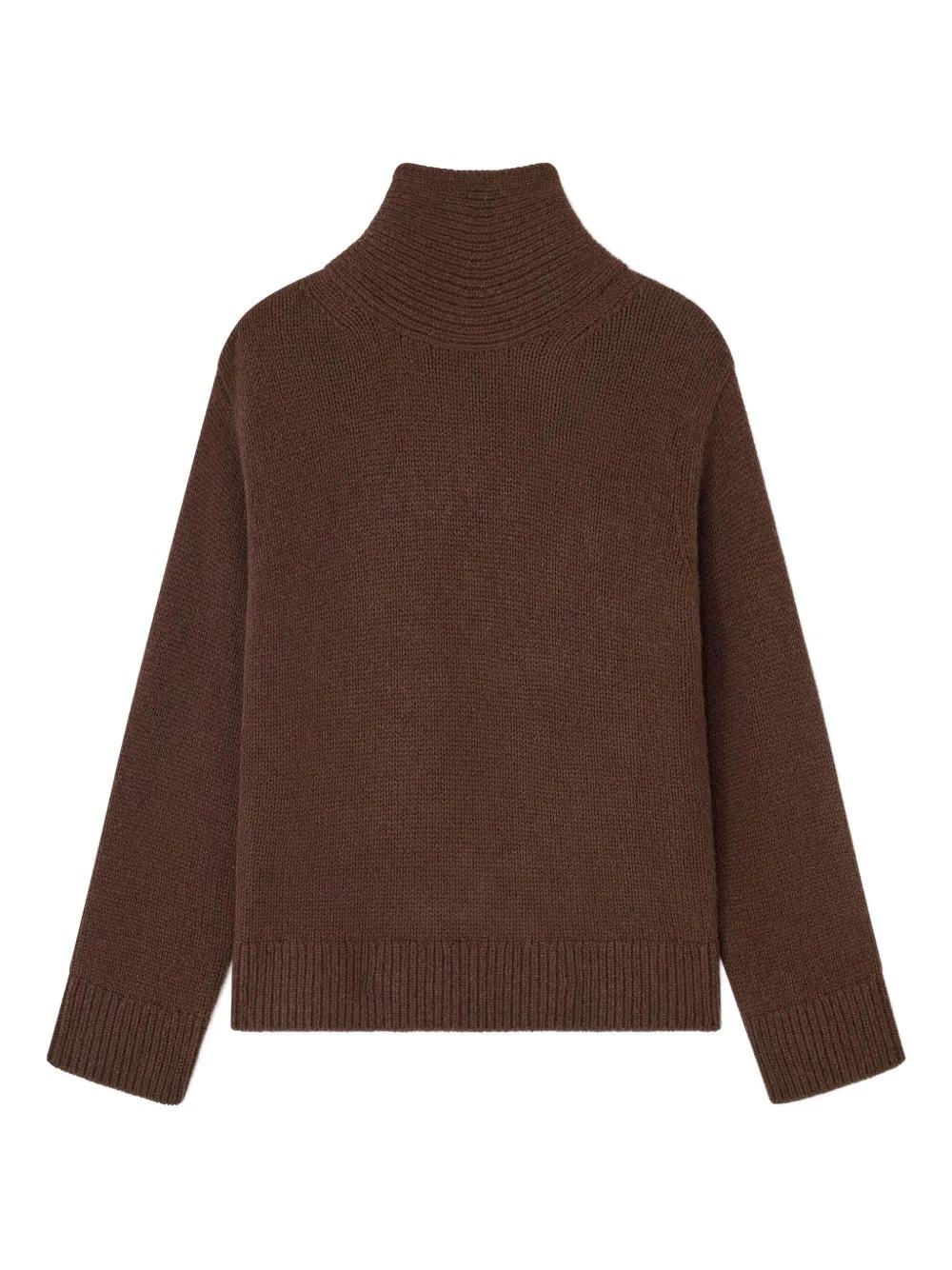 black brown turtleneck long sleeves stripe pattern fitted fine knit