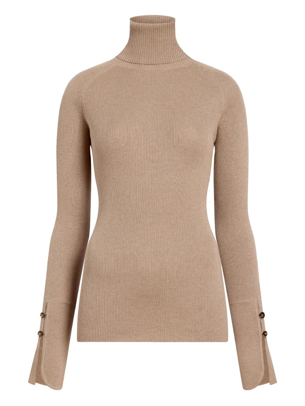 beige merino wool scarf detail long sleeves