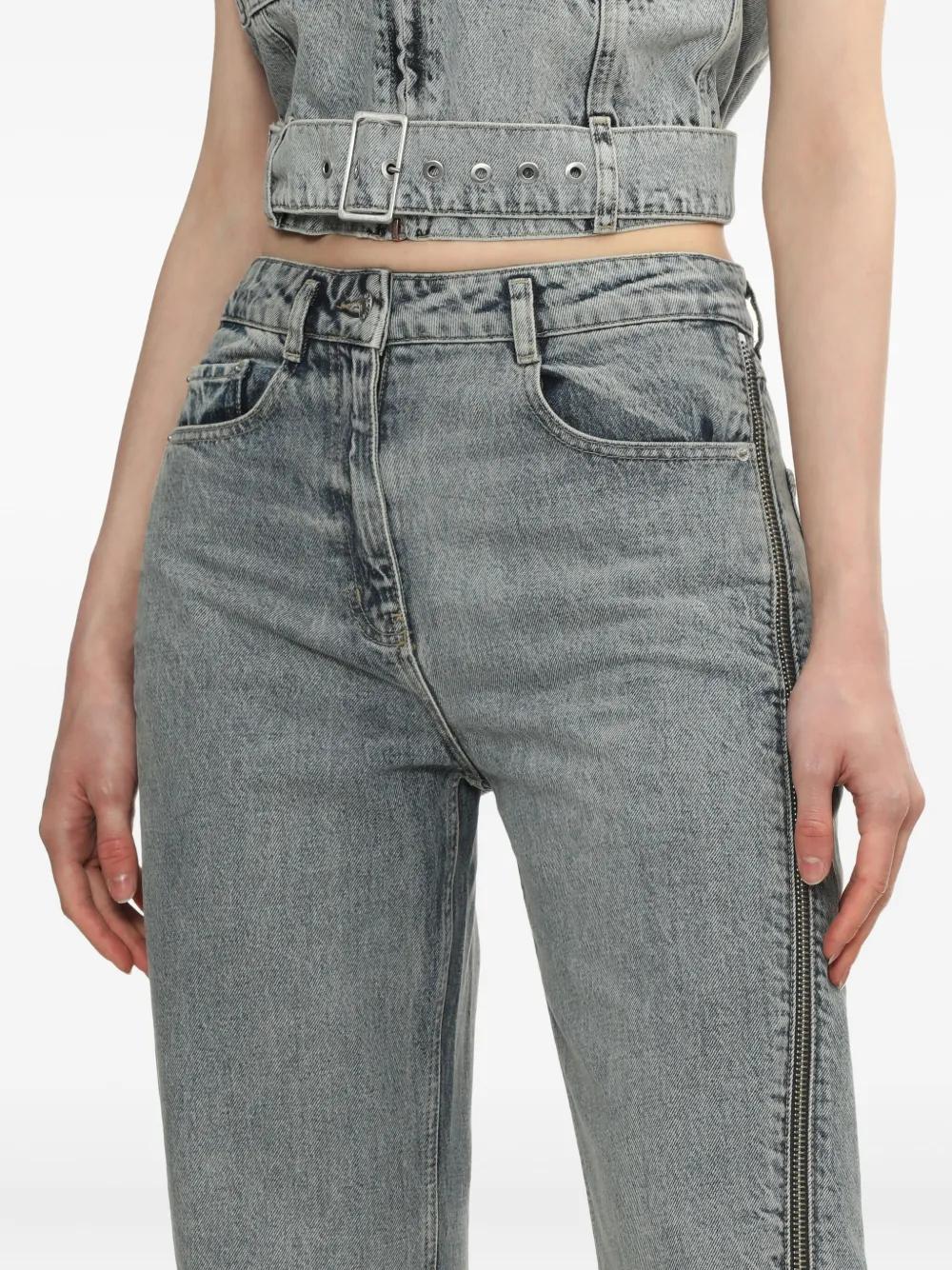 blue side zip detailing five-pocket styling button fly straight leg high waist