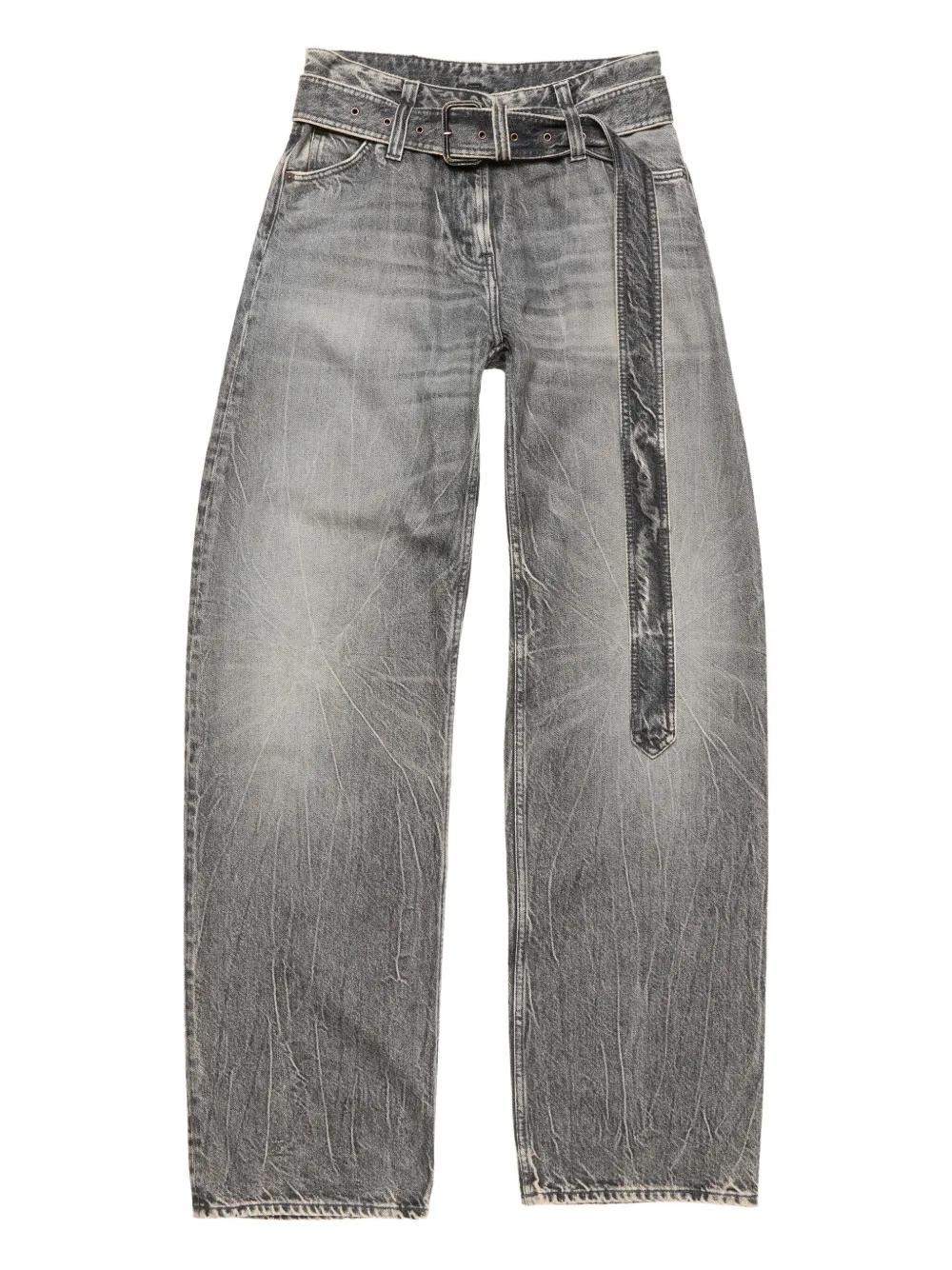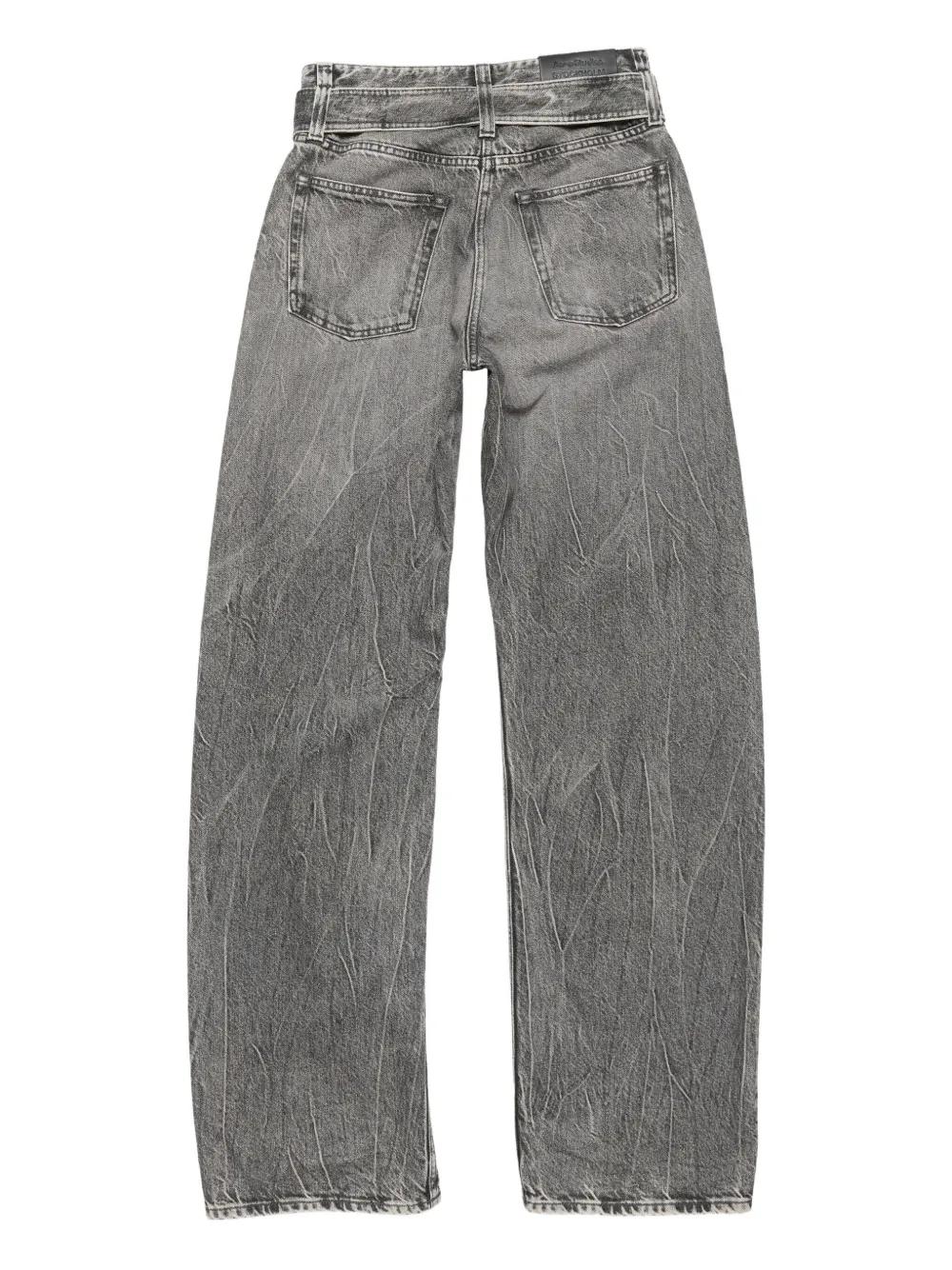 blue wide leg seam detail classic five pockets belt loops button and fly fastening