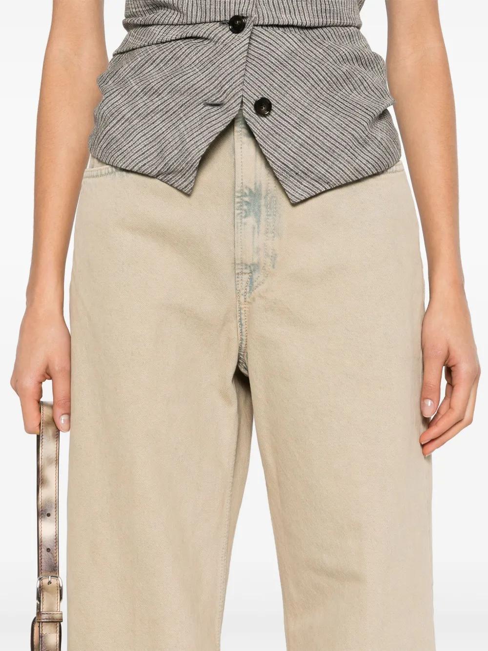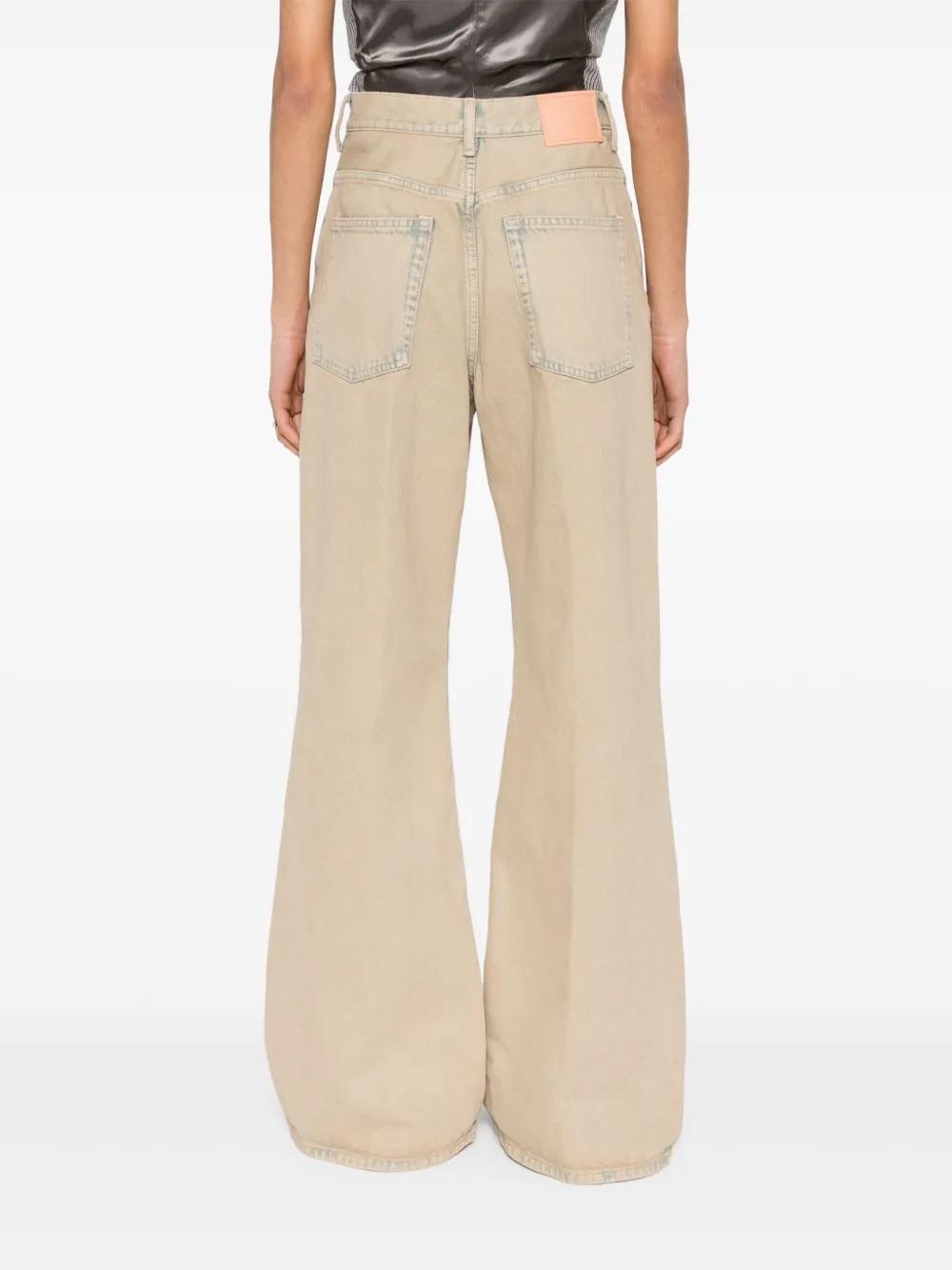 taupe cotton washed denim belt loops classic five pockets logo patch to the rear wide leg concealed fly and button fastening