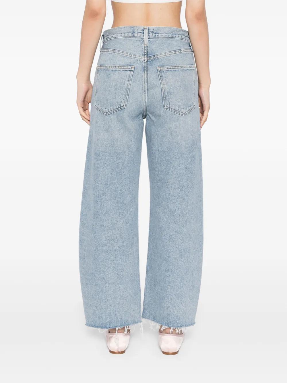 indigo blue concealed front button, hook and zip fastening belt loops classic five pockets
