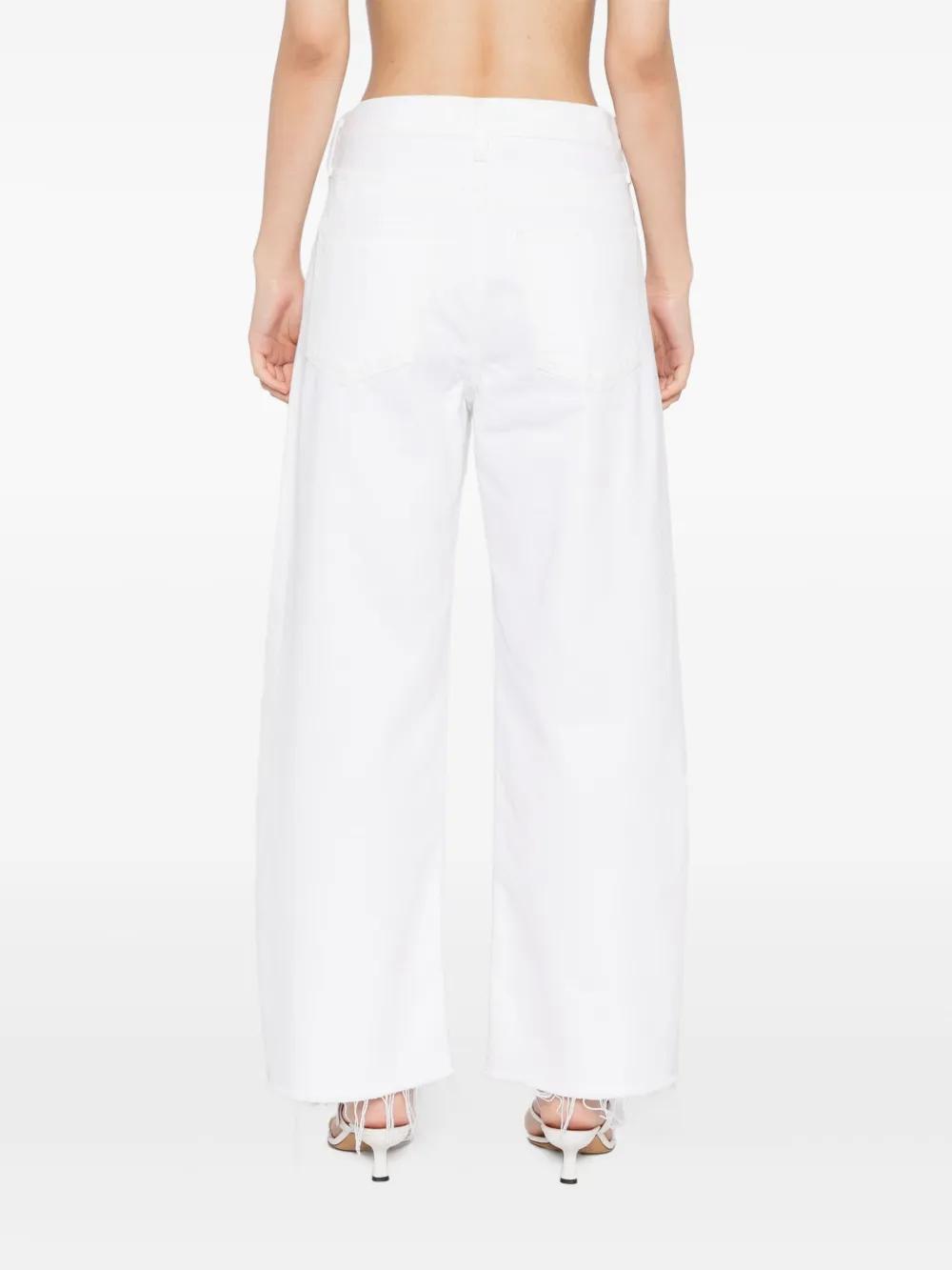 cream white concealed front button, hook and zip fastening belt loops classic five pockets