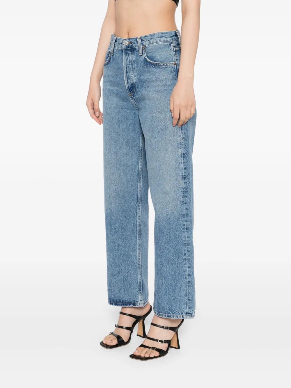 indigo blue concealed front button, hook and zip fastening classic five pockets belt loops straight hem