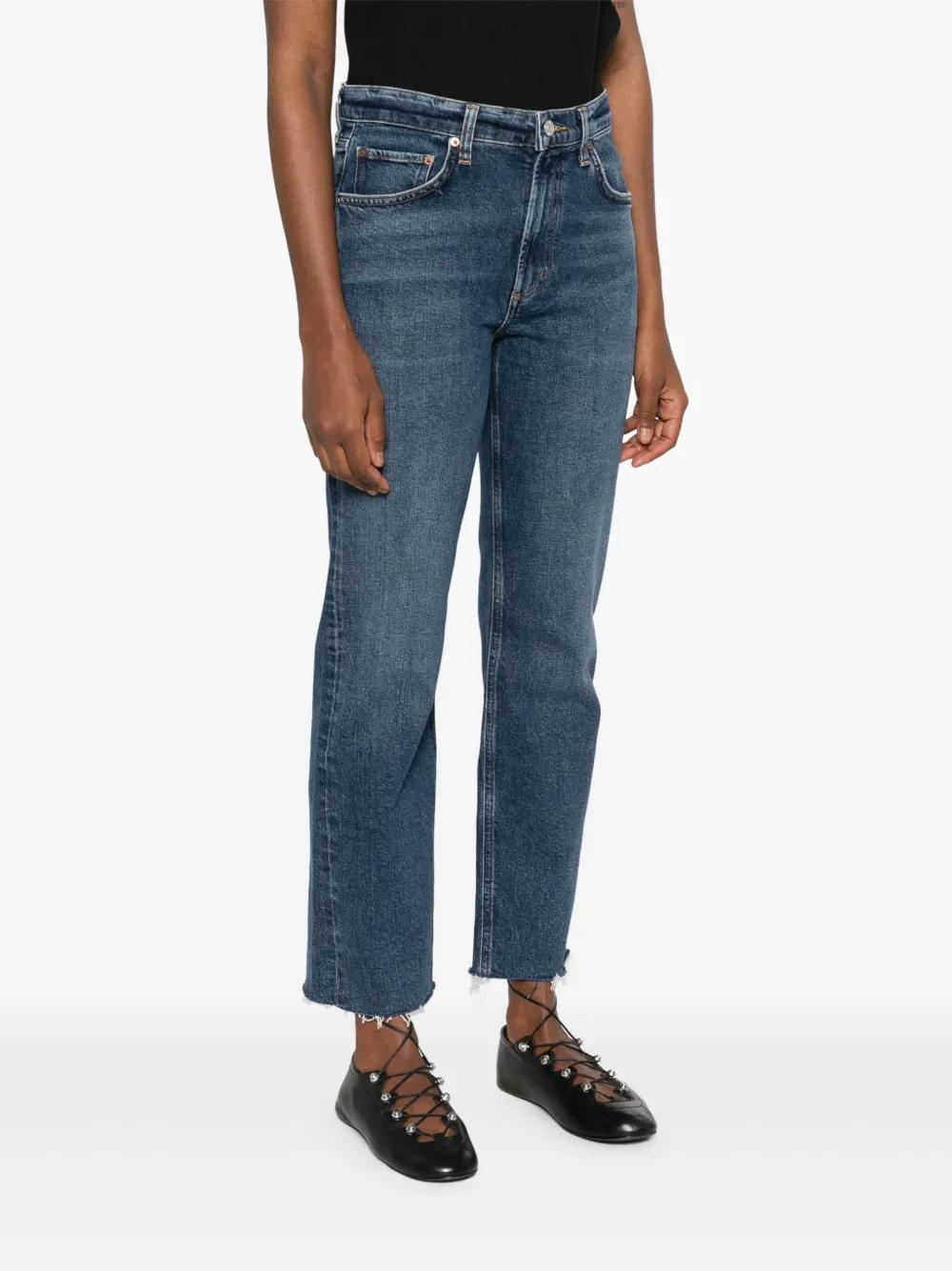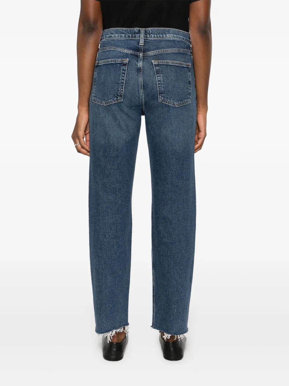 indigo blue front button and zip fastening belt loops classic five pockets mid-rise