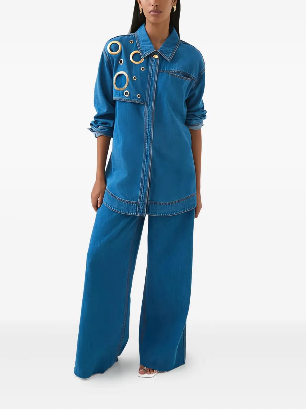 white topstitch detail belt loops five pockets logo patch gold-tone hardware