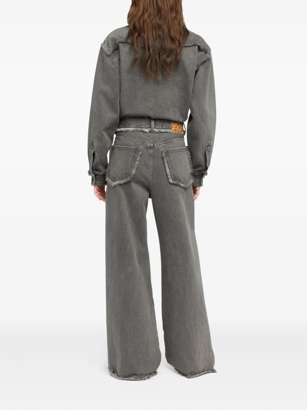 charcoal grey raw-edge hem high waist five-pocket styling