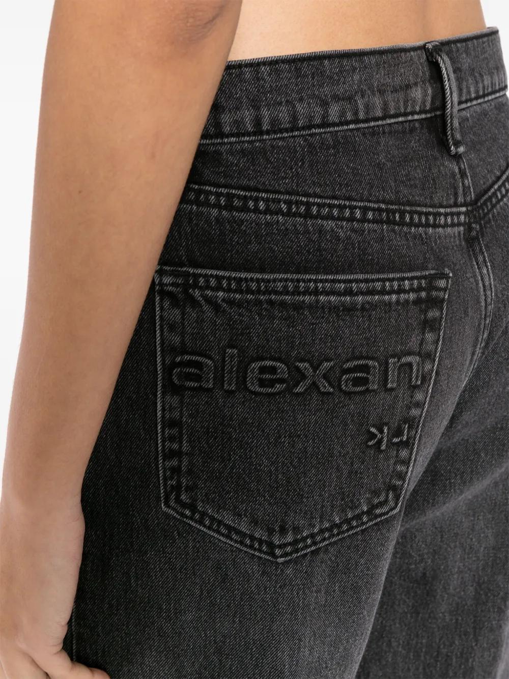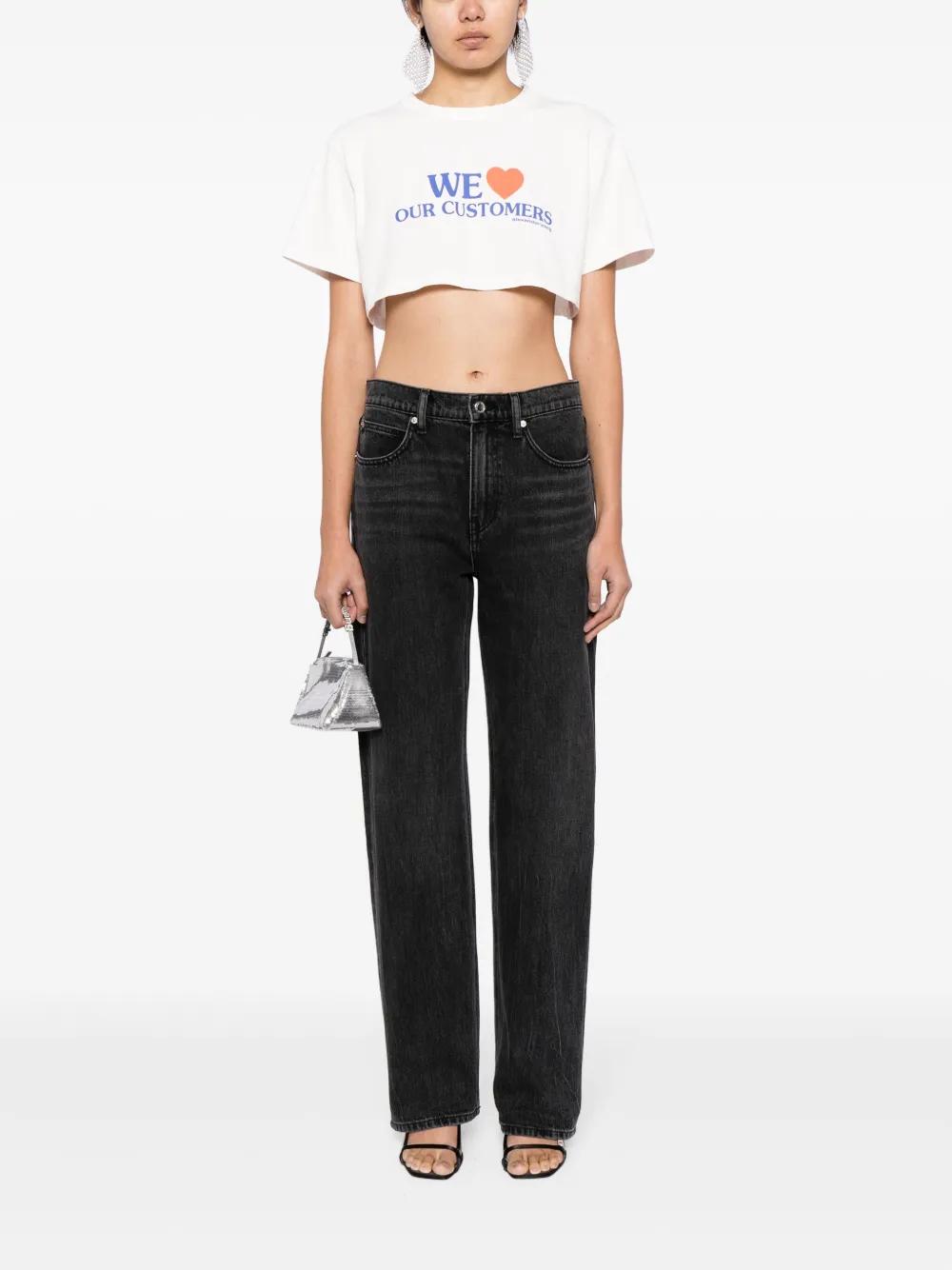 black cotton denim mid-rise belt loops concealed fly and button fastening signature five-point crown embossed logo to the rear straight leg
