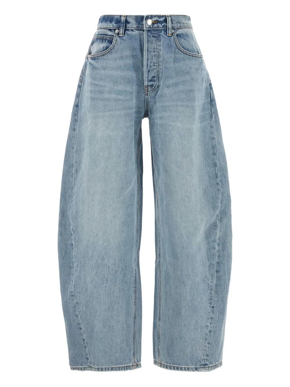 light blue five-pocket design contrasting topstitching button fastening leather logo patch on the back