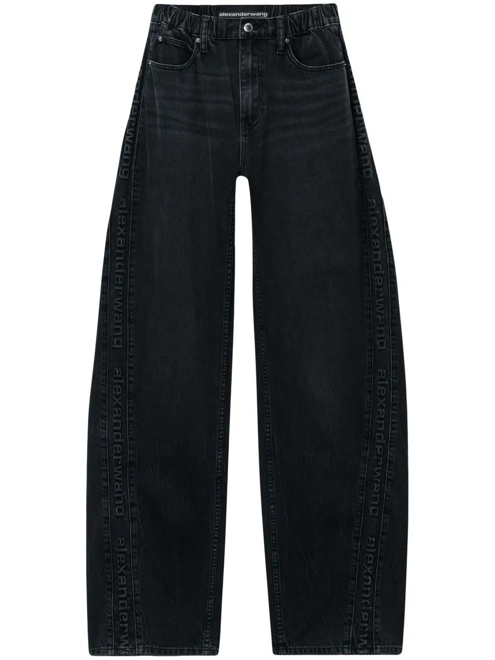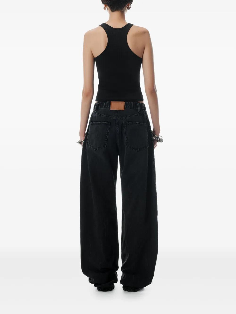 black concealed fly and button fastening belt loops classic five pockets whiskering effect