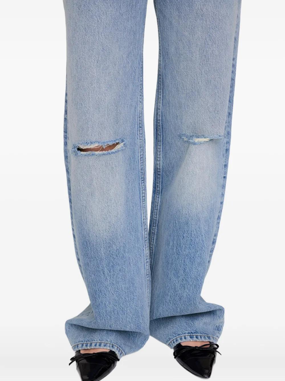 light blue concealed fly and button fastening belt loops classic five pockets ripped detailing