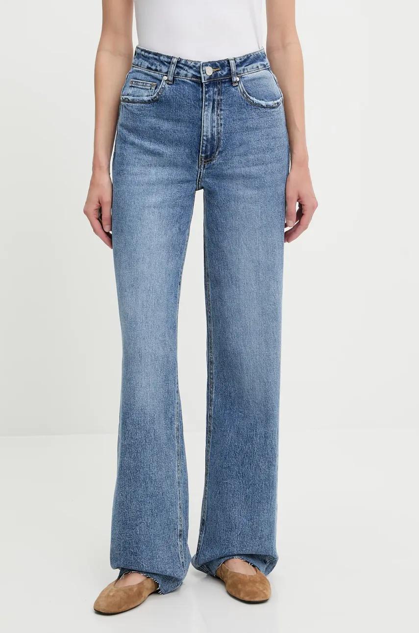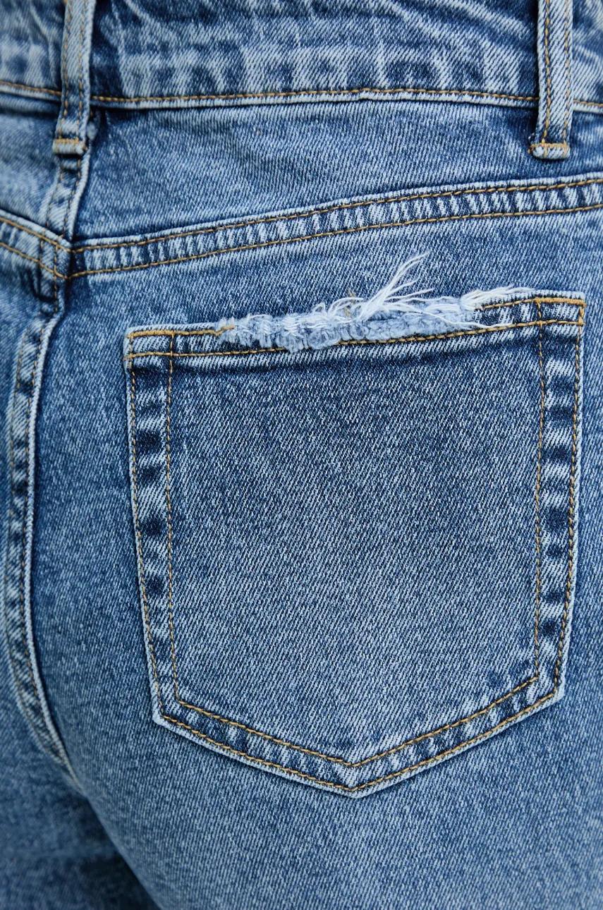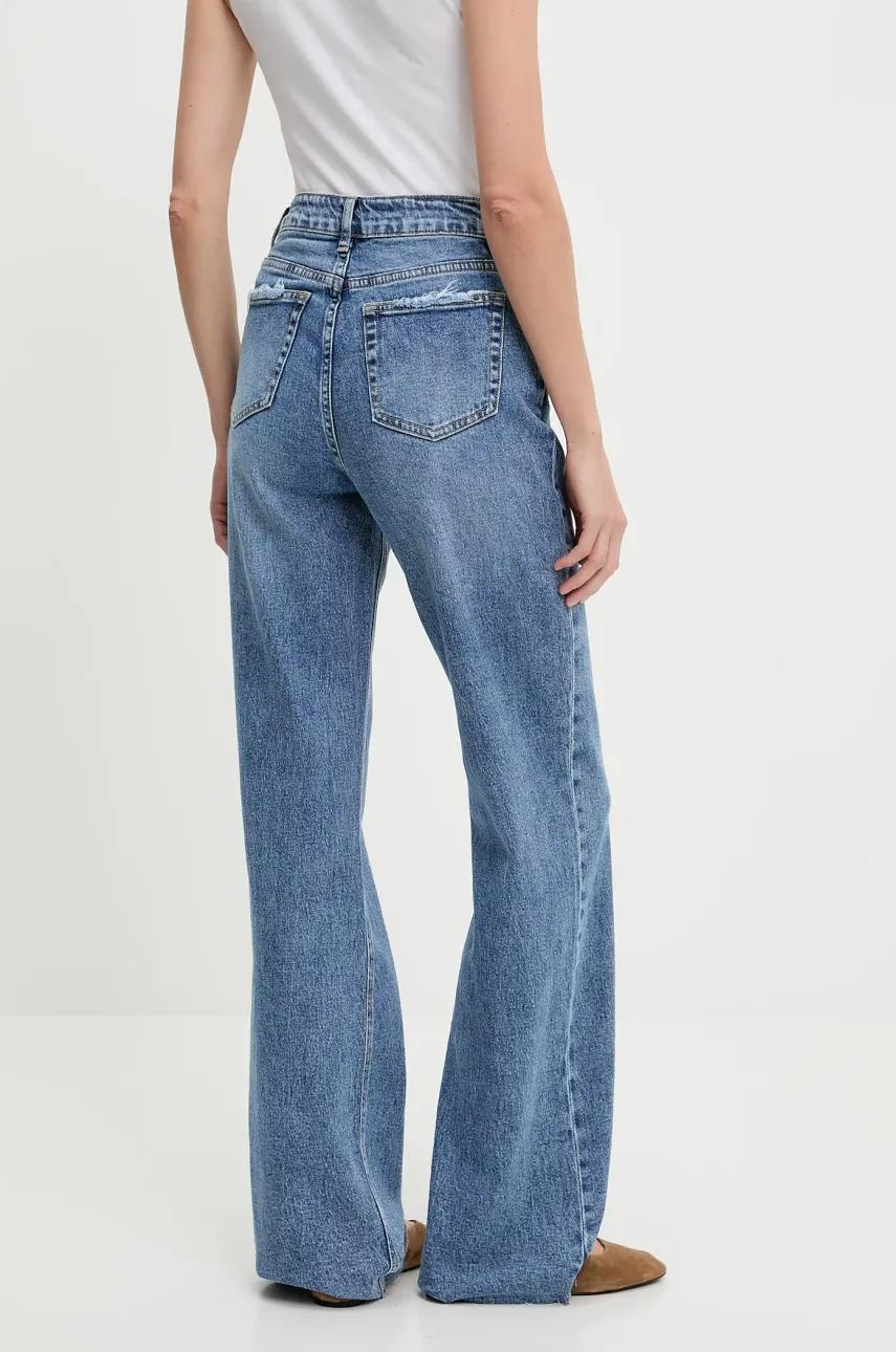 - Jeansy lekko dopasowane w okolicy bioder. - Model z podwyższoną talią i zapięciem na guzik i suwak. - Rozszerzana nogawka. - Z przodu trzy wsuwane kieszenie. - Dwie wsuwane kieszenie na pośladkach. - Model z ozdobnymi wystrzępieniami. - Szerokość w pasie: 34 cm. - Szerokość w biodrach: 48 cm. - Wysokość stanu: 29 cm. - Długość wewnętrzna nogawki: 86 cm. - Długość zewnętrzna nogawki: 114 cm. - Wymiary podane dla rozmiaru: S.