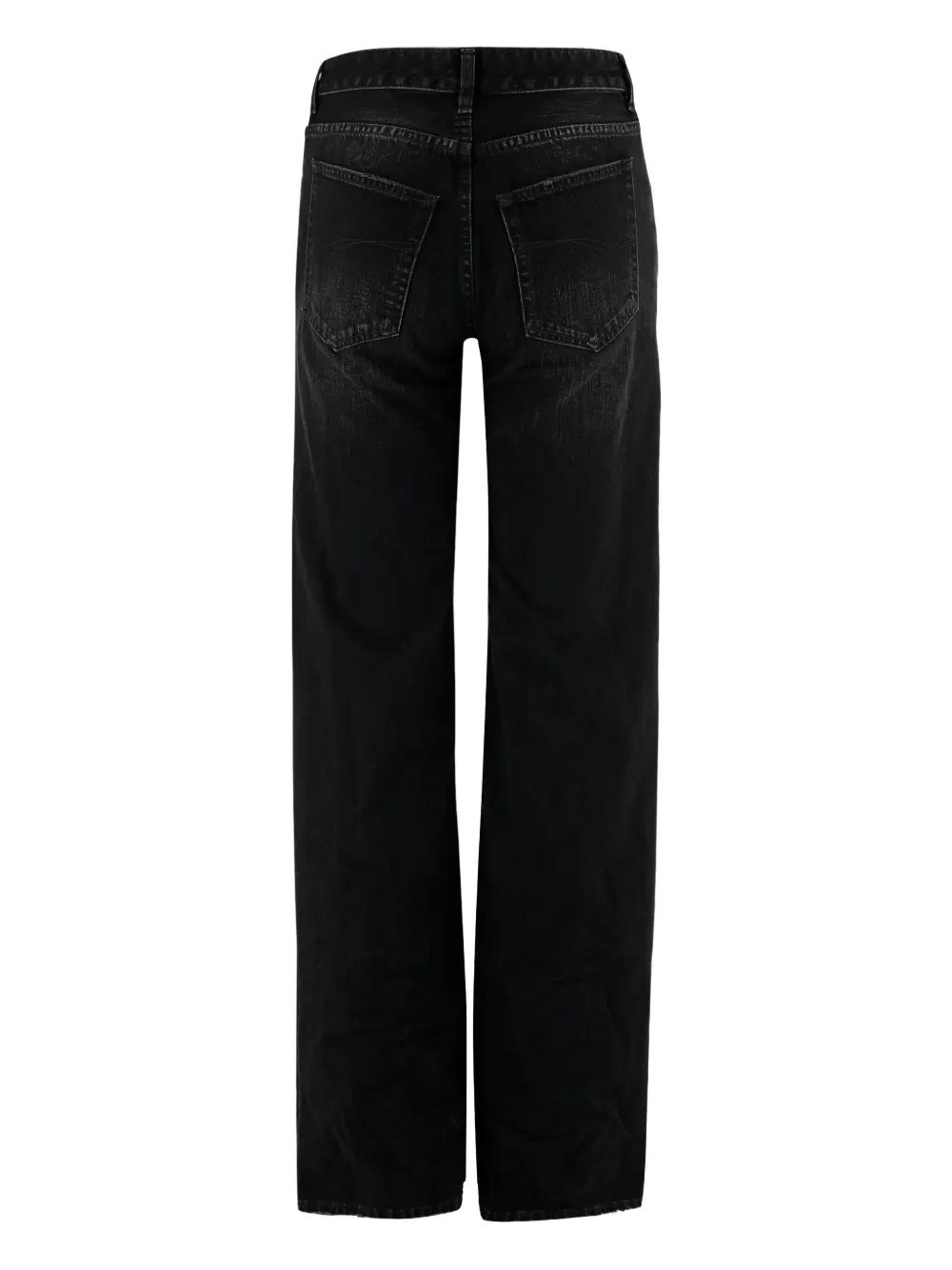 light blue high waist five-pocket design button and zip fastening belt loops pressed creases