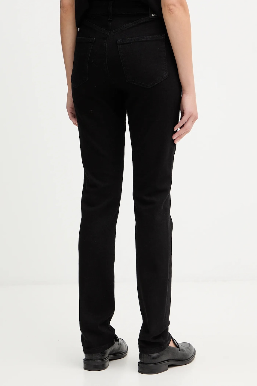 - Produkt zawiera materiały z włókien pochodzących z recyklingu. - Model z podwyższoną talią i zapięciem na guzik i suwak. - Z przodu trzy wsuwane kieszenie. - Dwie wsuwane kieszenie na pośladkach. - Szerokość w pasie: 35 cm. - Szerokość w biodrach: 40 cm. - Wysokość stanu: 27 cm. - Szerokość nogawki na dole: 14 cm. - Szerokość nogawki: 24 cm. - Długość nogawki: 105 cm. - Wymiary podane dla wzrostu: 27/32.