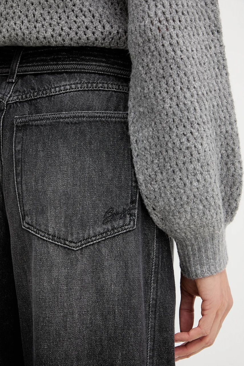 - Jeansy luźne w okolicy bioder i ud. - Luźna nogawka. - Model z podwyższoną talią i zapięciem na guzik i suwak. - Z przodu dwie wsuwane kieszenie. - Dwie wsuwane kieszenie na pośladkach. - Dołączony tekstylny pasek. - Szerokość w pasie: 37 cm. - Szerokość w biodrach: 51,5 cm. - Wysokość stanu: 30 cm. - Szerokość nogawki na dole: 24,5 cm. - Szerokość nogawki: 30,5 cm. - Długość zewnętrzna nogawki: 109,5 cm. - Wymiary podane dla rozmiaru: 27/32.
