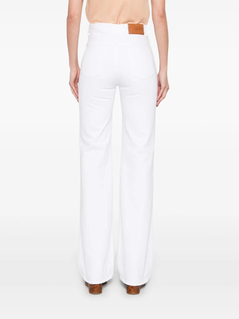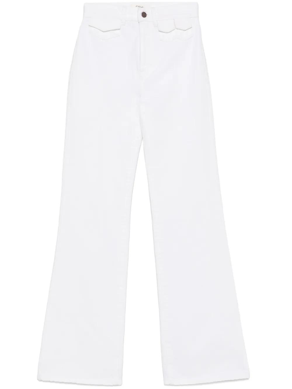 white front button and zip fastening belt loops front flap pockets two rear patch pockets