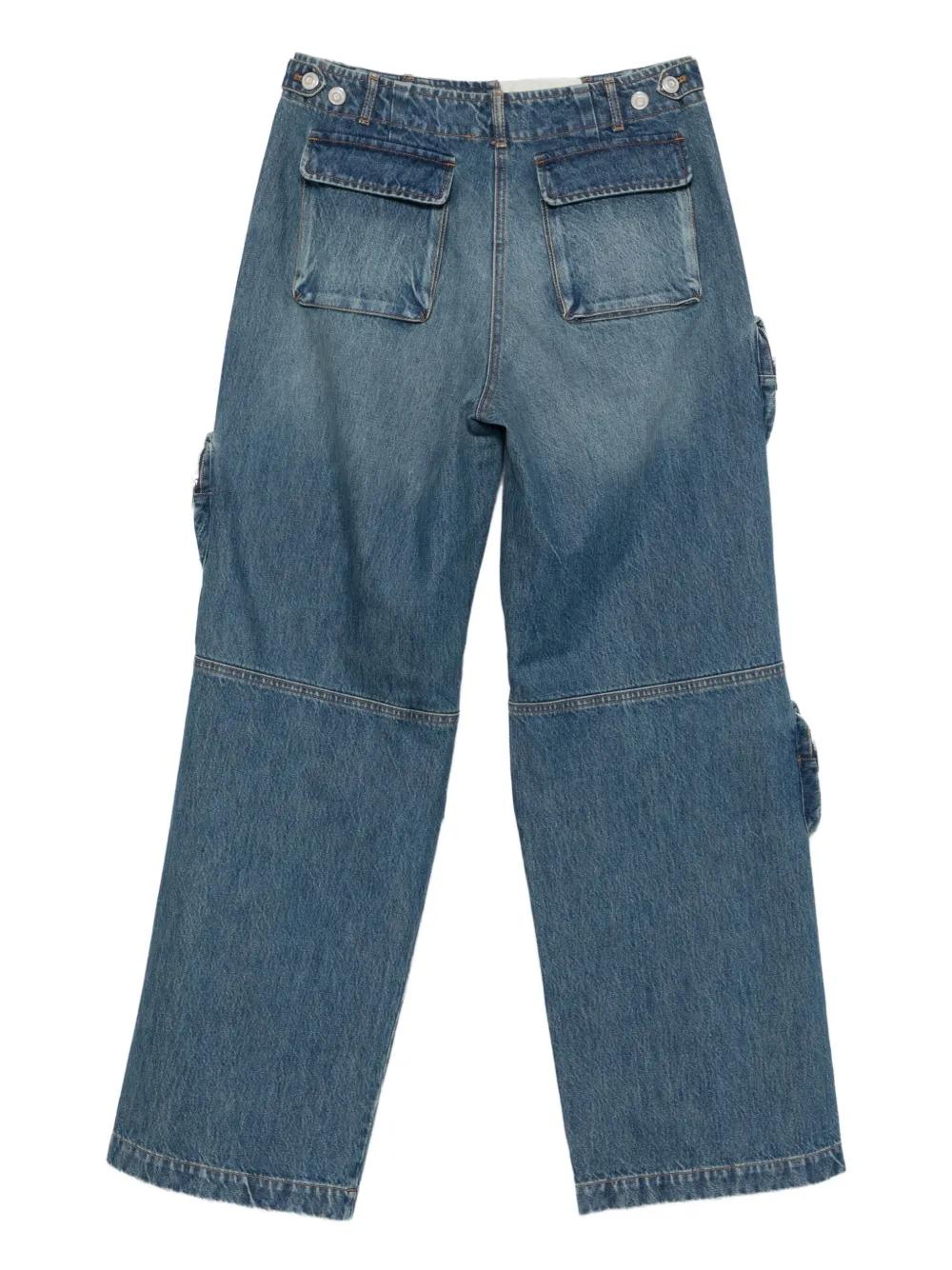 blue multiple flap pockets button fly fastening cotton belt loops side pockets