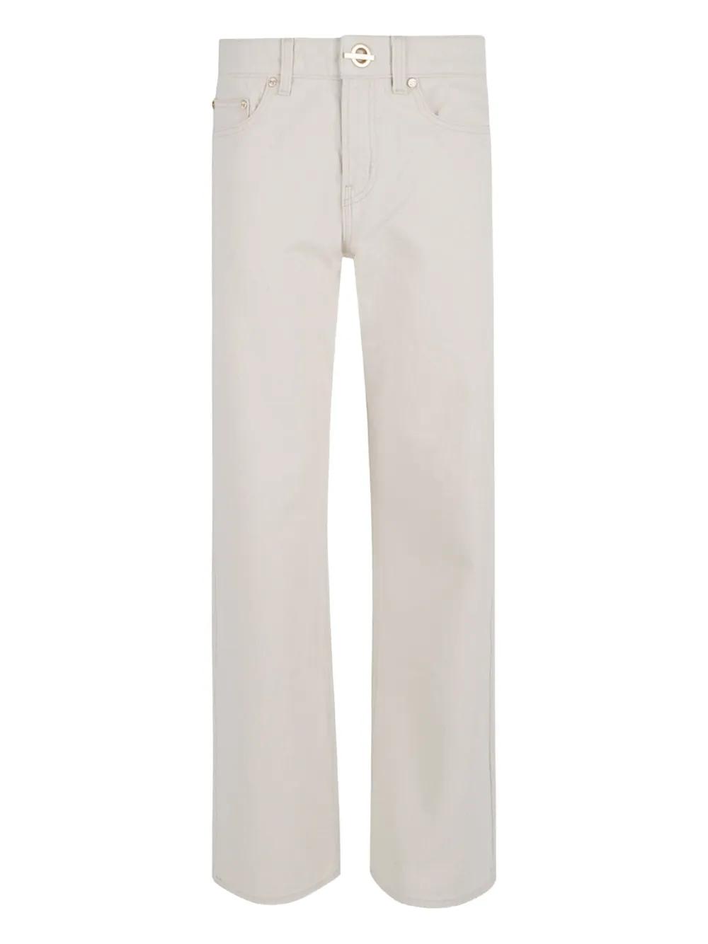 beige logo detail belt loops five pockets top button fastening rear patch pockets