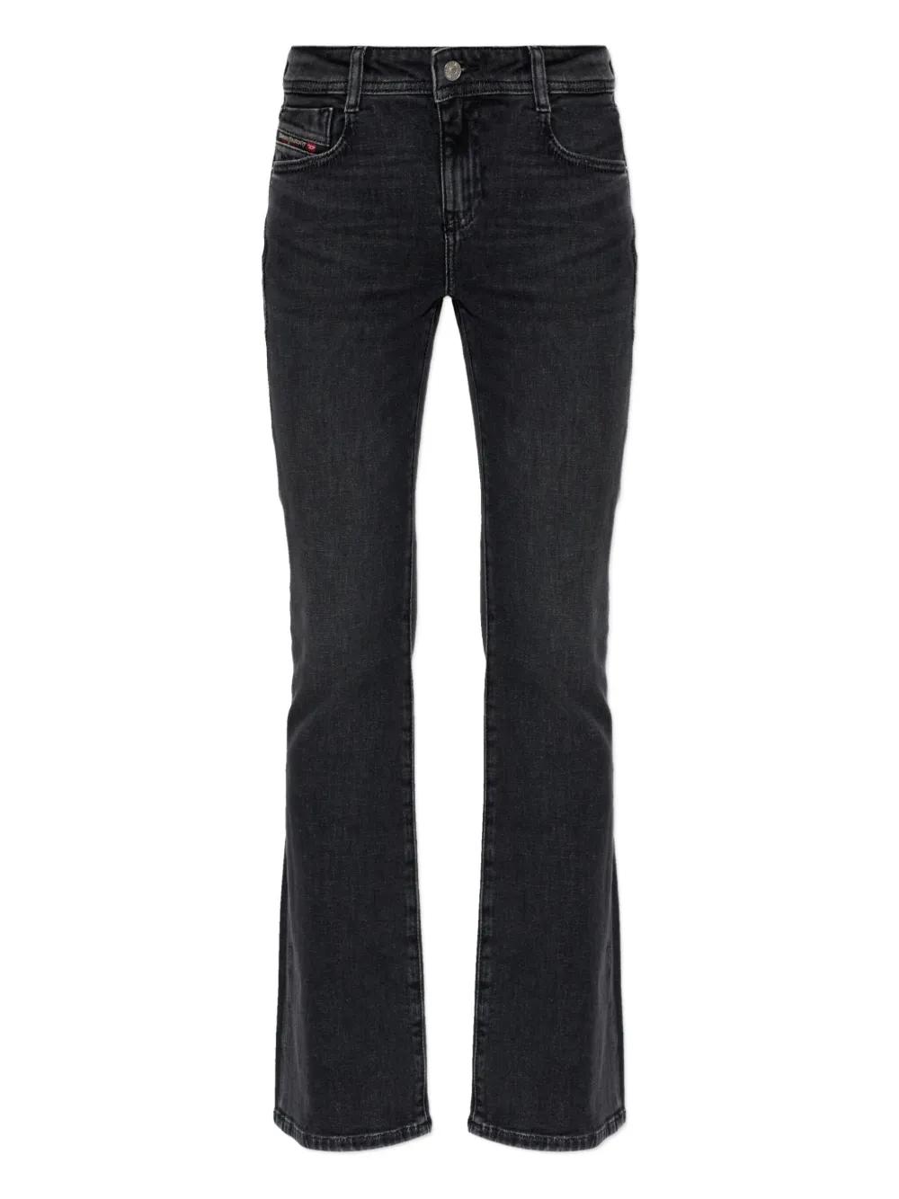 blue cotton washed denim whiskering effect concealed fly and button fastening belt loops classic five pockets boyfriend cut