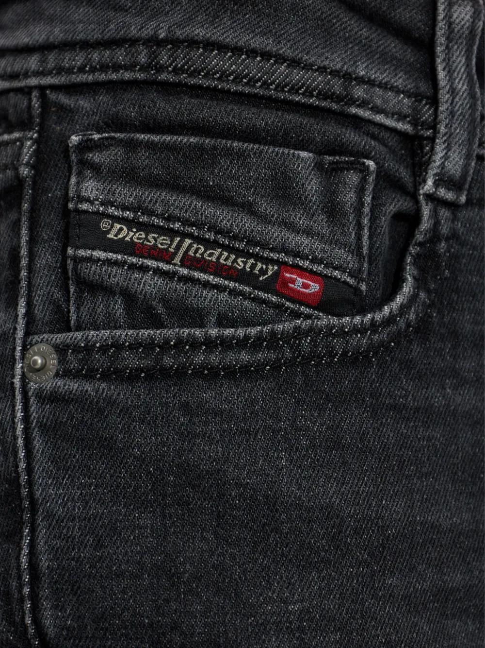 black recycled leather five pockets top button fastening belt loops tonal stitching