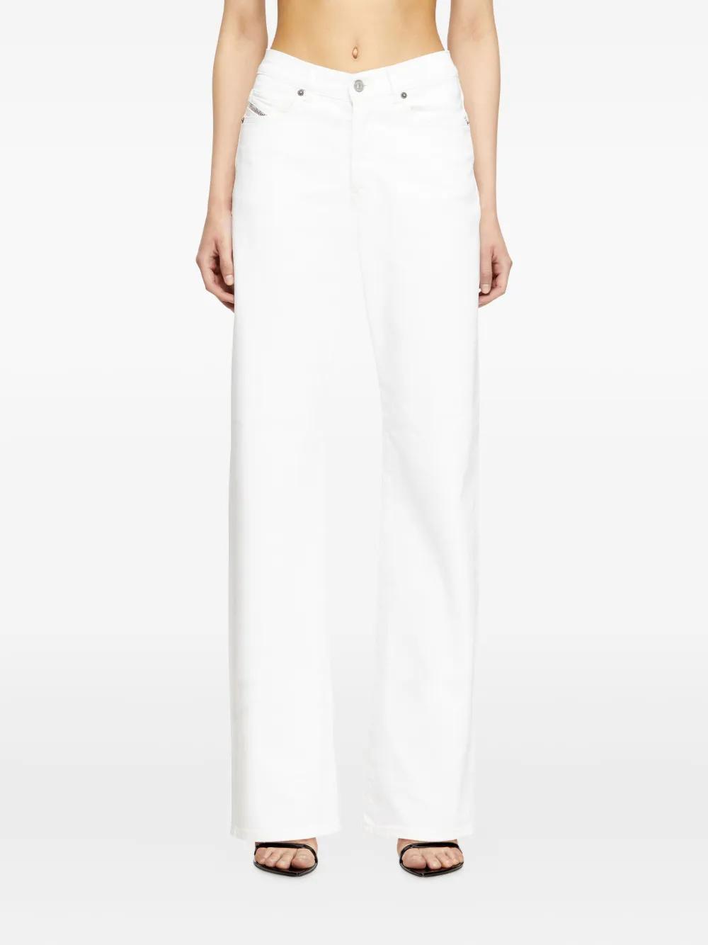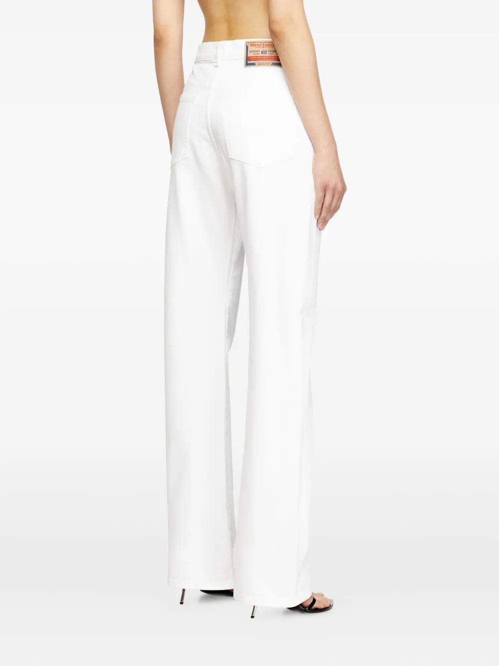 white high-waisted front button and zip fastening classic five pockets straight leg