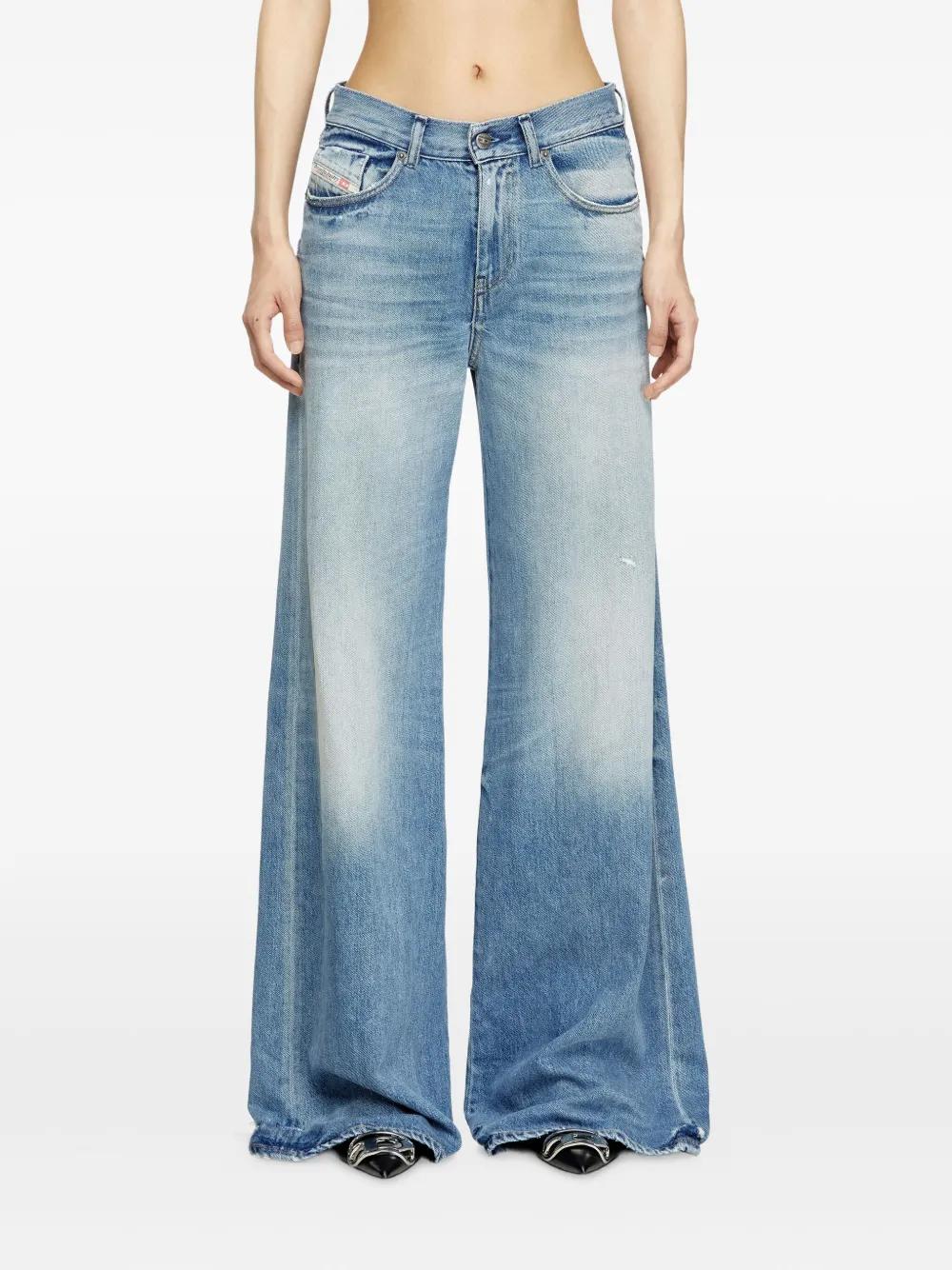 light blue distressed detailing concealed fly and button fastening five-pocket design high-rise waist subtle fading
