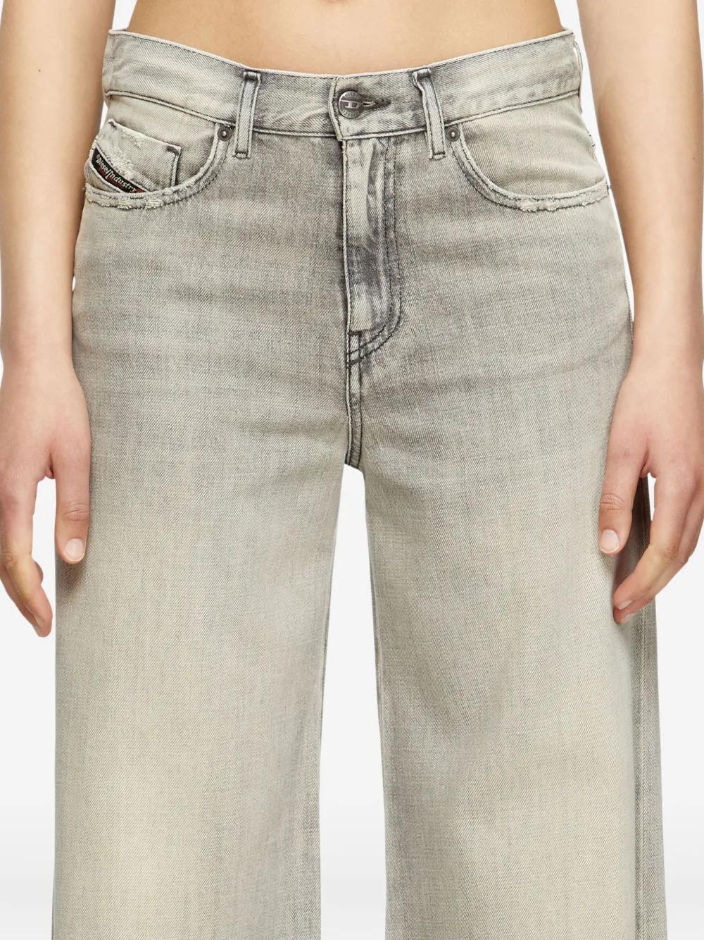 light grey concealed fly and button fastening belt loops classic five pockets appliqué logo