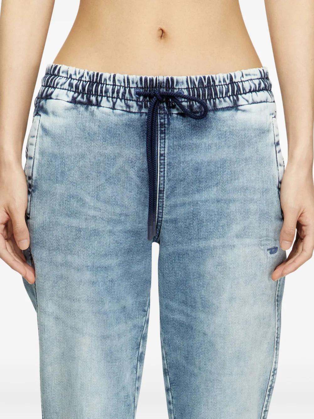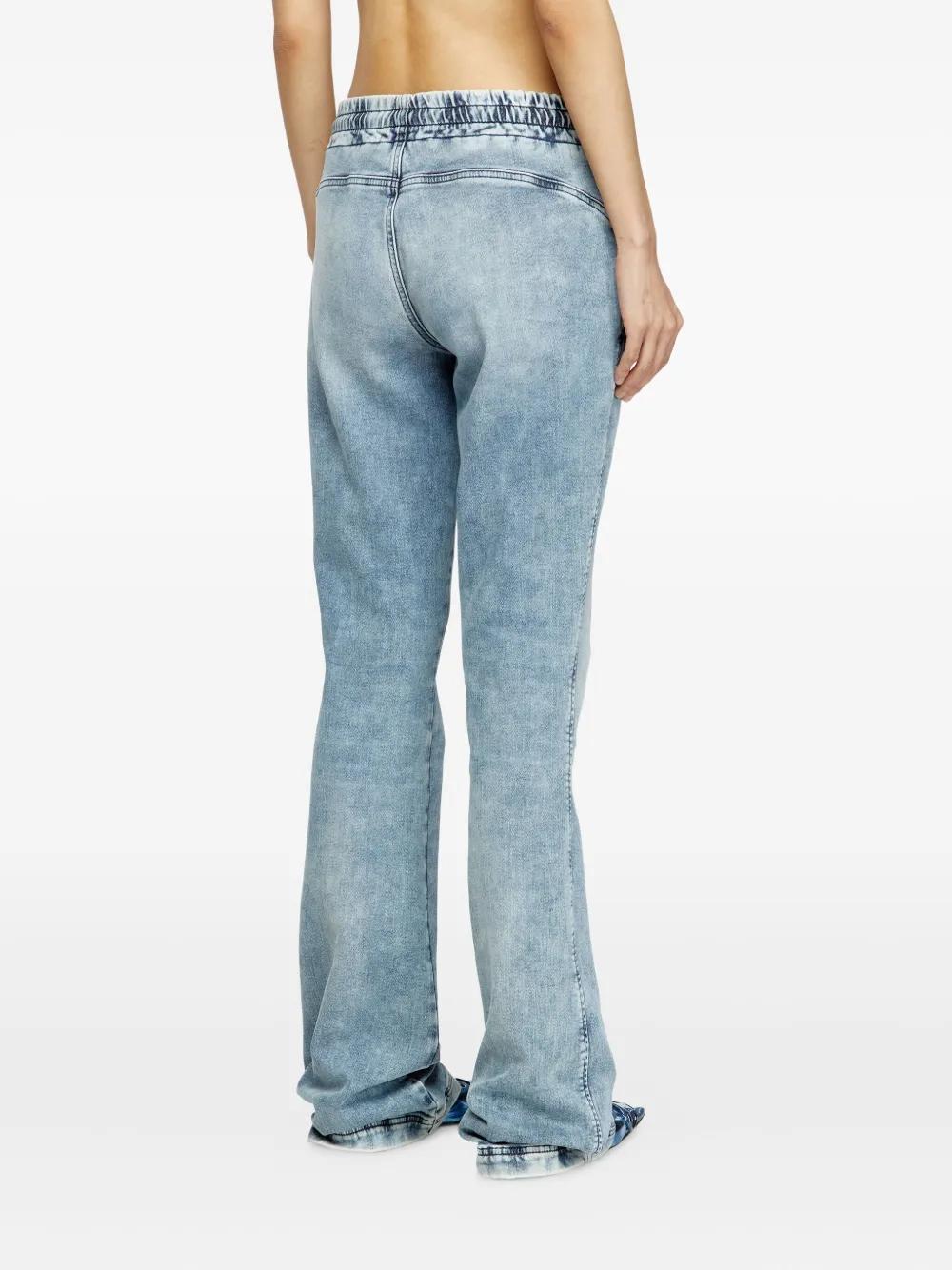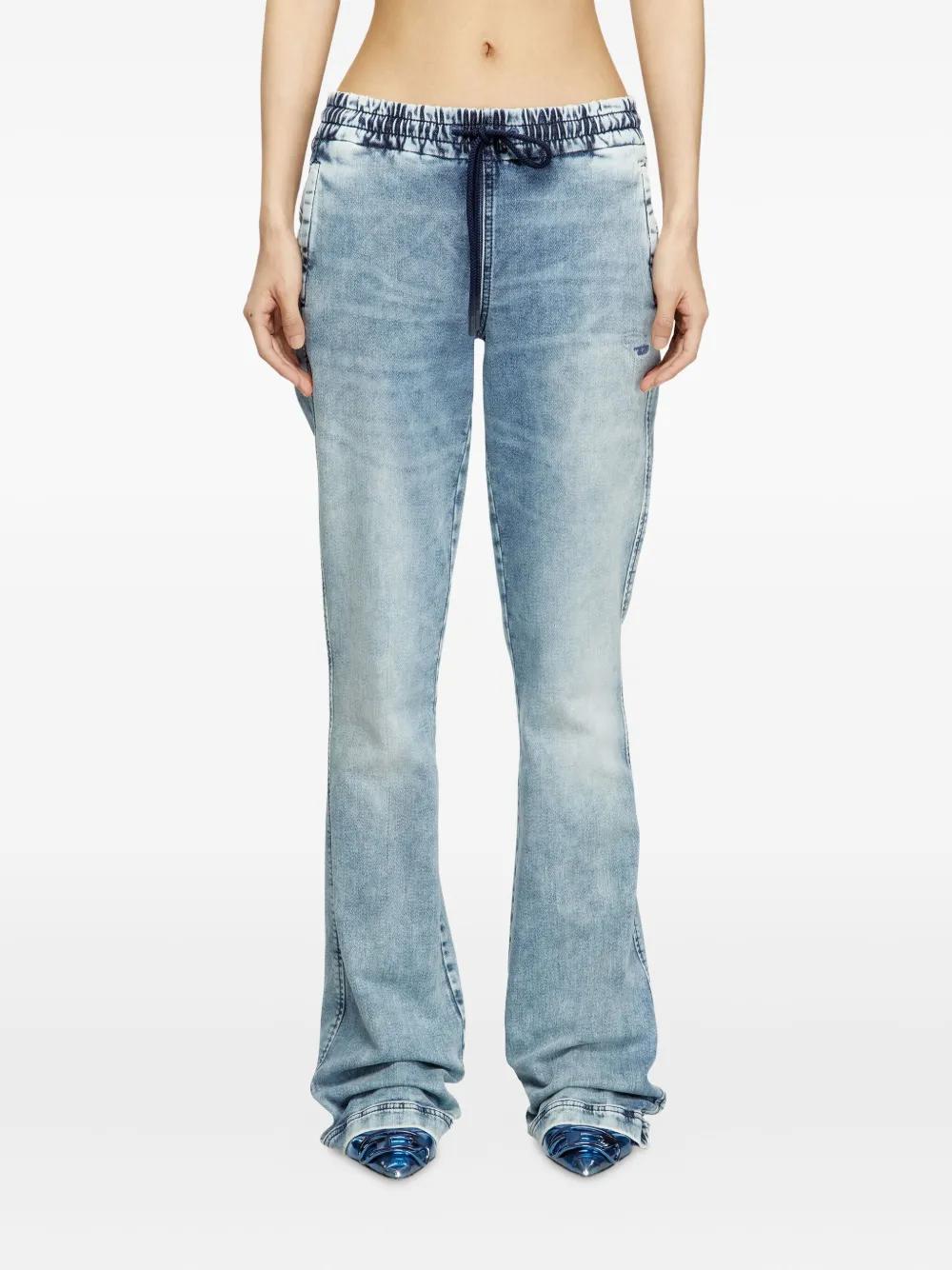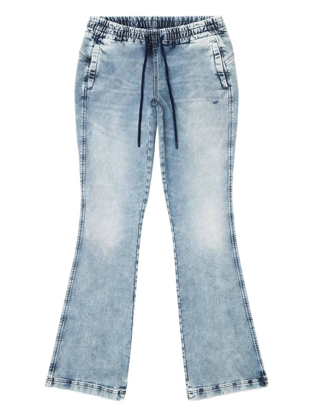 light blue drawstring waist side pockets back pockets stitched detail flared hem