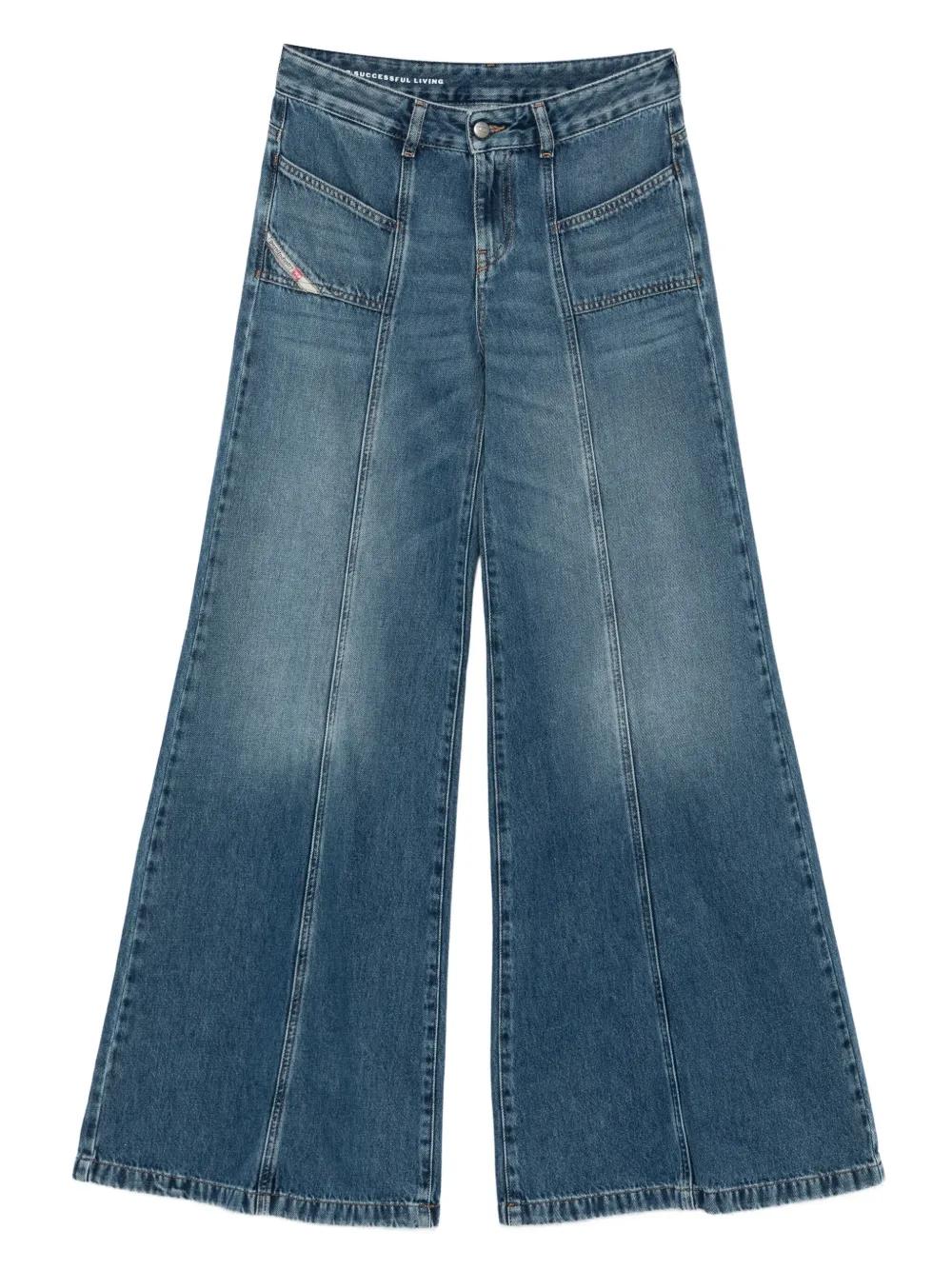 indigo blue side zip fastening two side slash pockets contrast stitching high-waisted