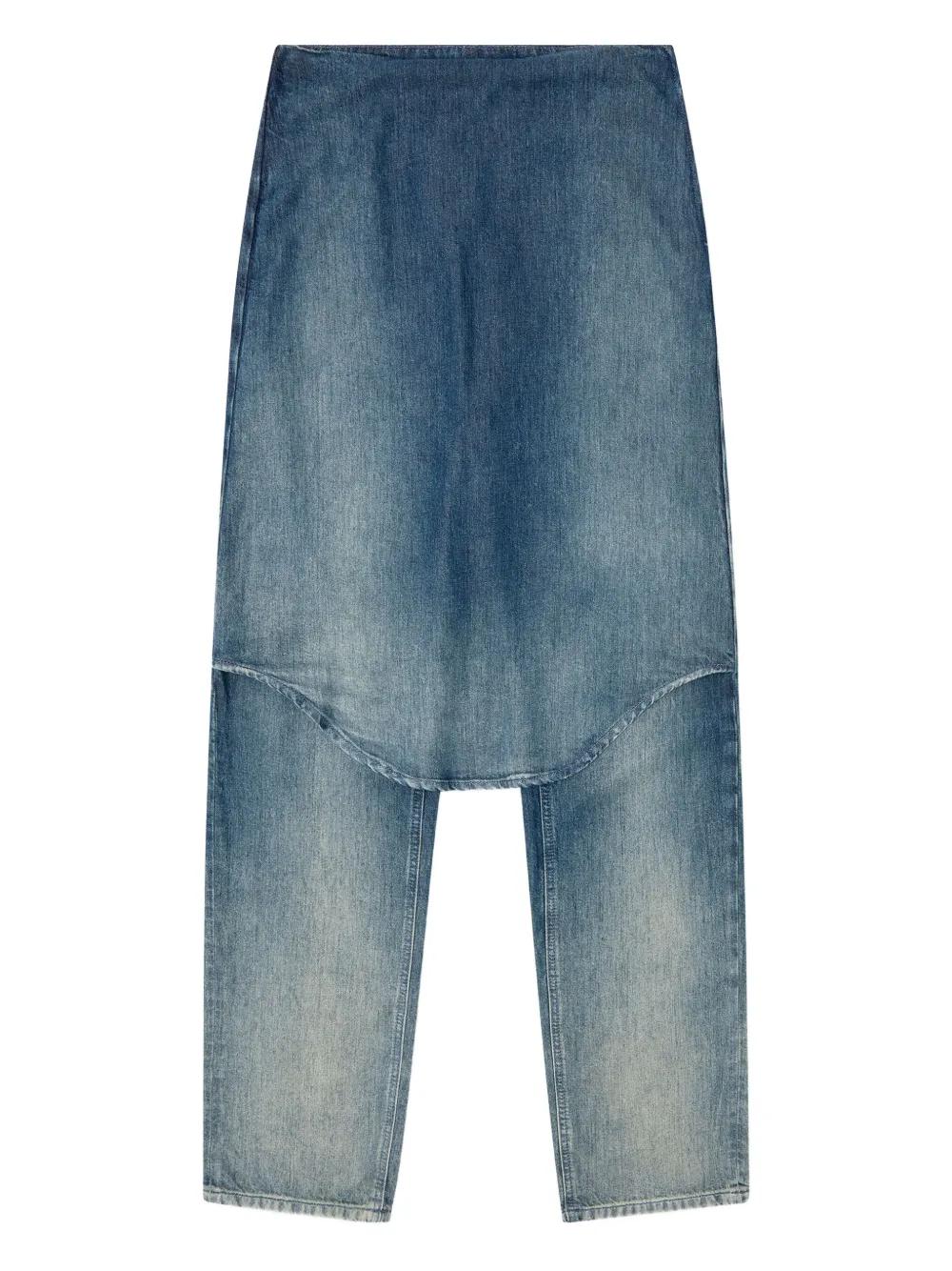 indigo blue side zip fastening two side slash pockets contrast stitching high-waisted
