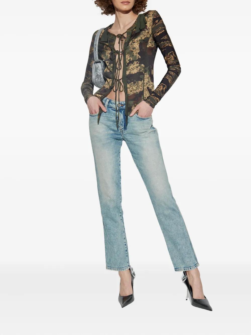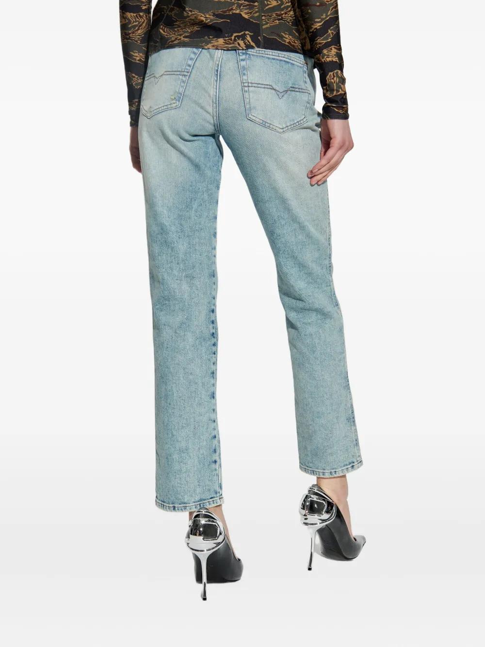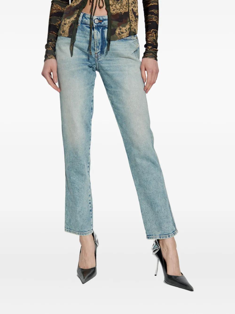 blue cotton ripped detailing silver-tone logo plaque high-waisted front button fastening classic five pockets slim cut