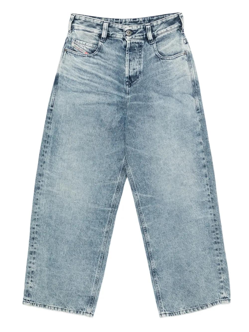 light blue button and fly fastening belt loops classic five pockets rear logo patch faded effect