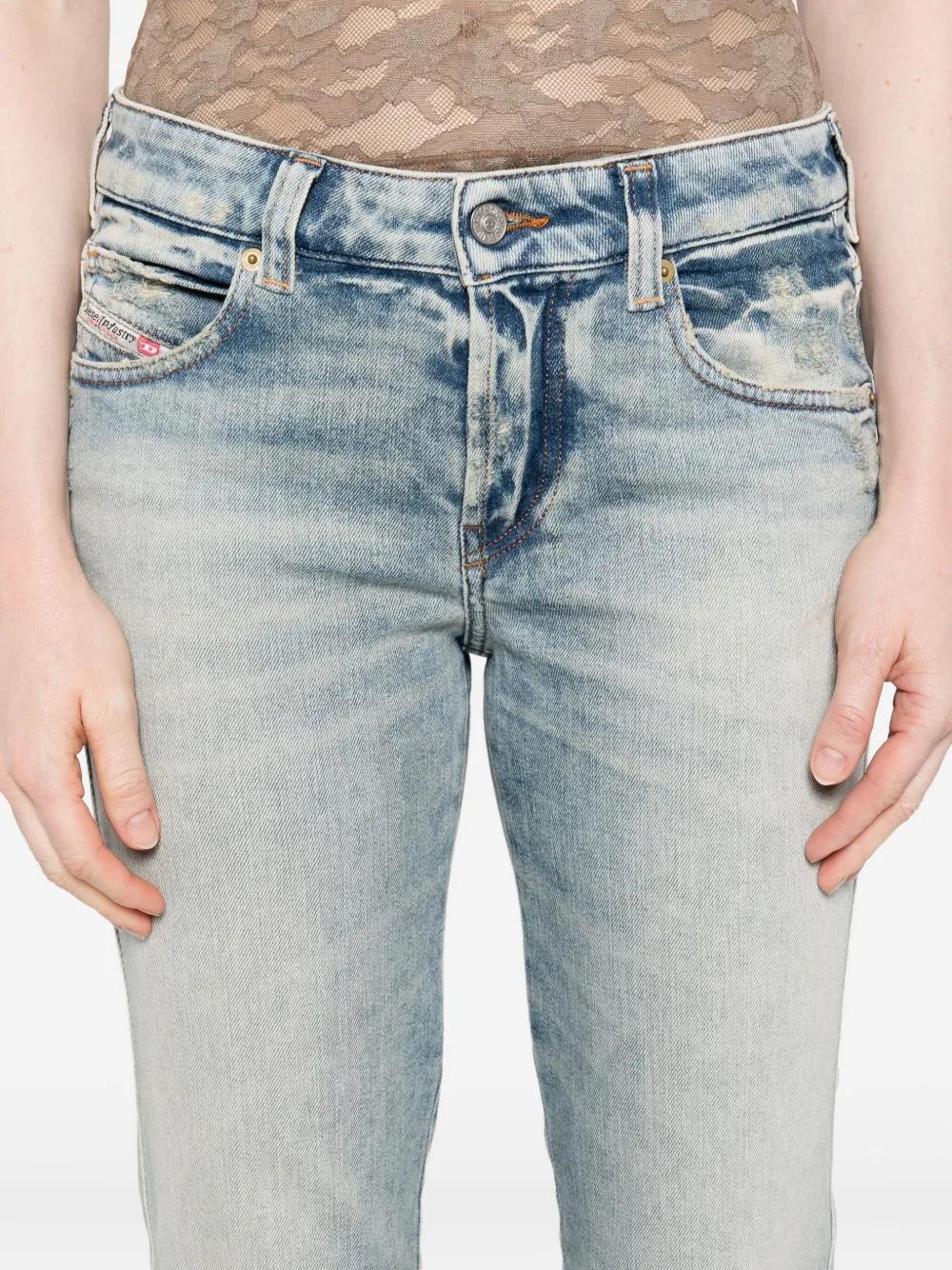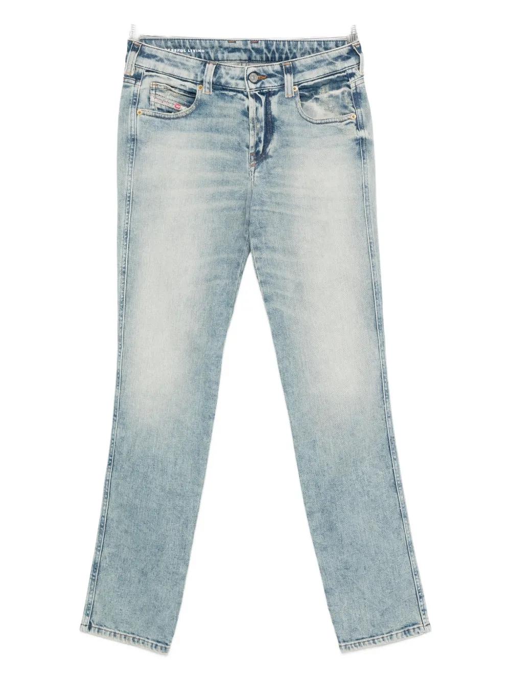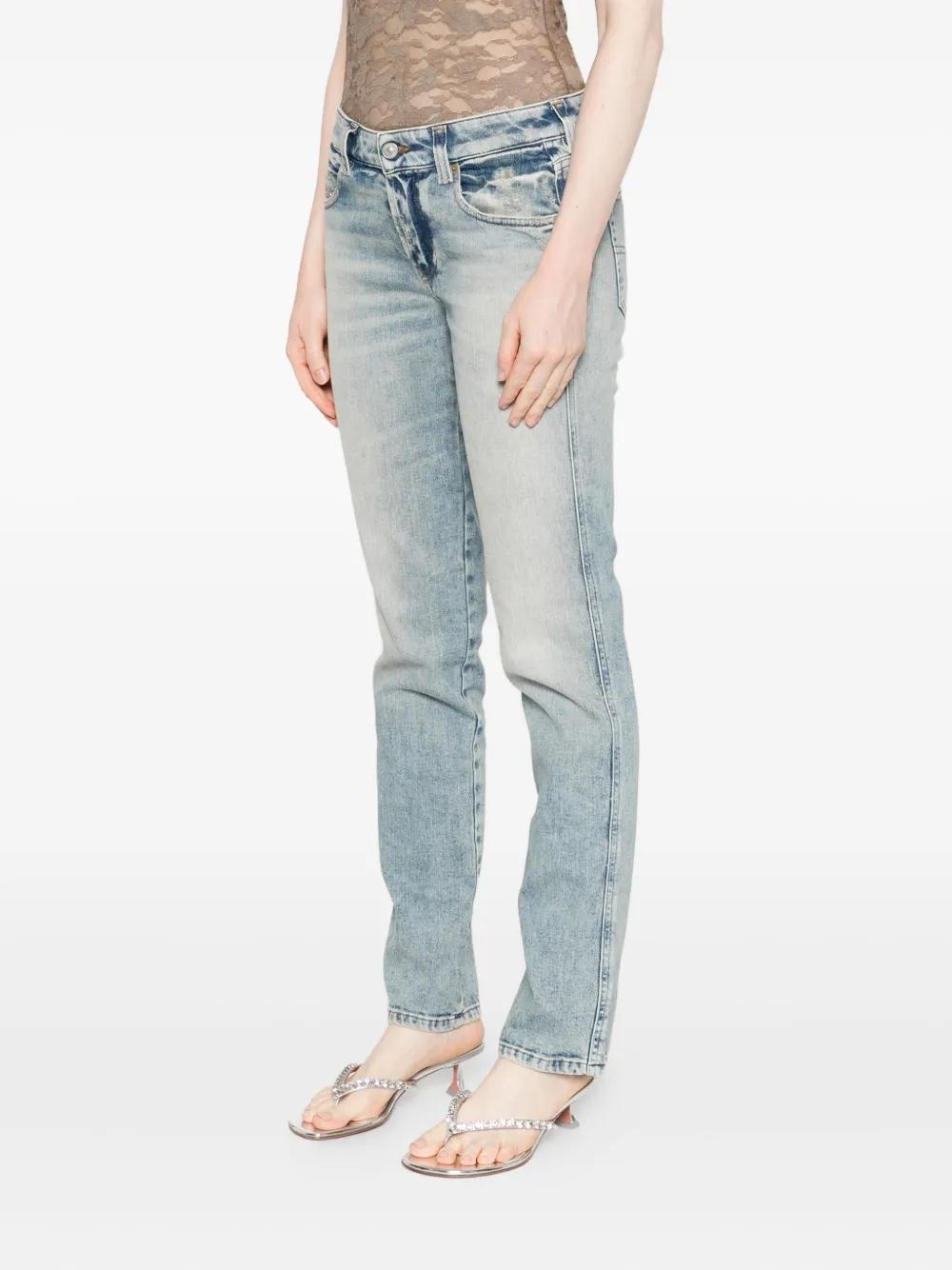 blue faded wash five-pocket styling button fly belt loops straight leg